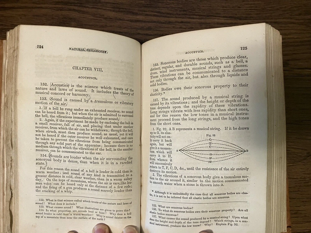 Parker's Natural and Experimental Philosophy 1853 Textbook Leatherbound