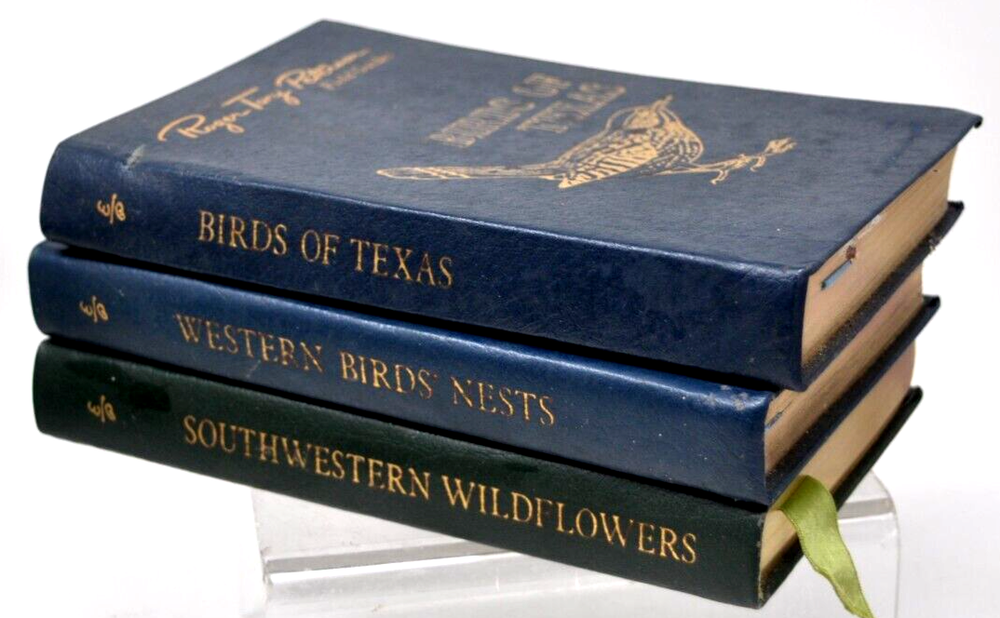 Set of 3 Roger Tory Peterson Field Guides 1. BIRDS OF TEXAS 2. SOUTHWESTERN AND TEXAS WILDFLOWERS 3. WESTERN BIRDS' NESTS 50th Anniversary Leather Edition with Bookplate 7.5x4.5 Ea