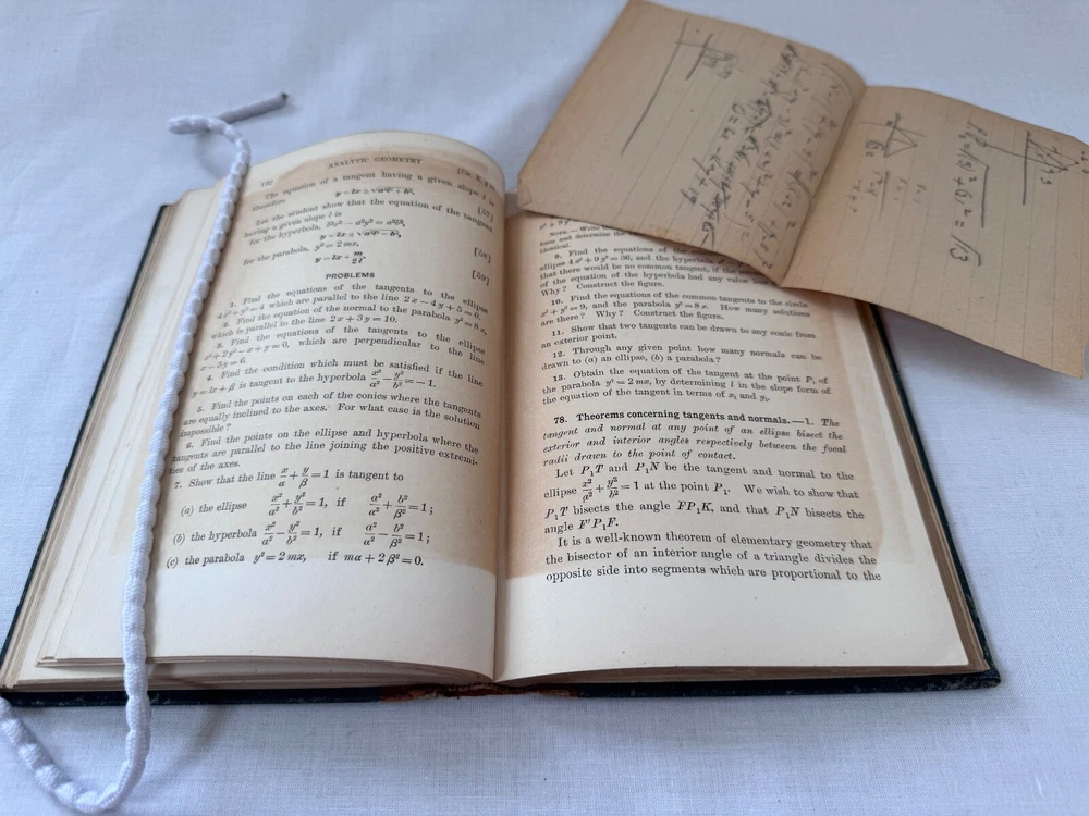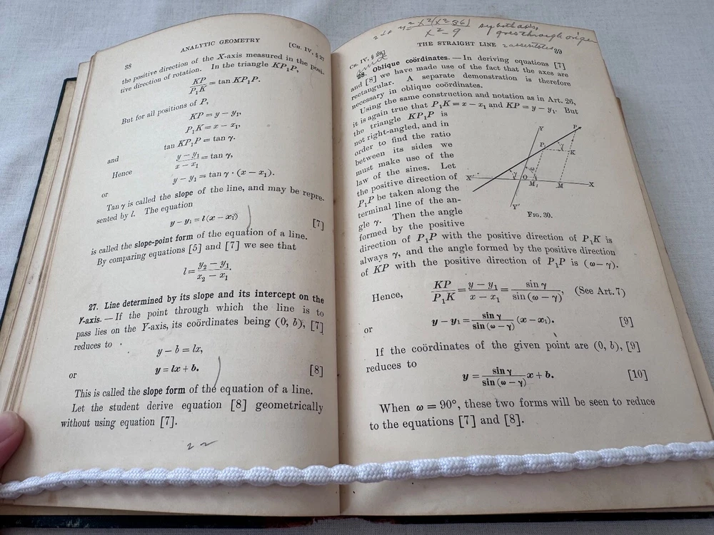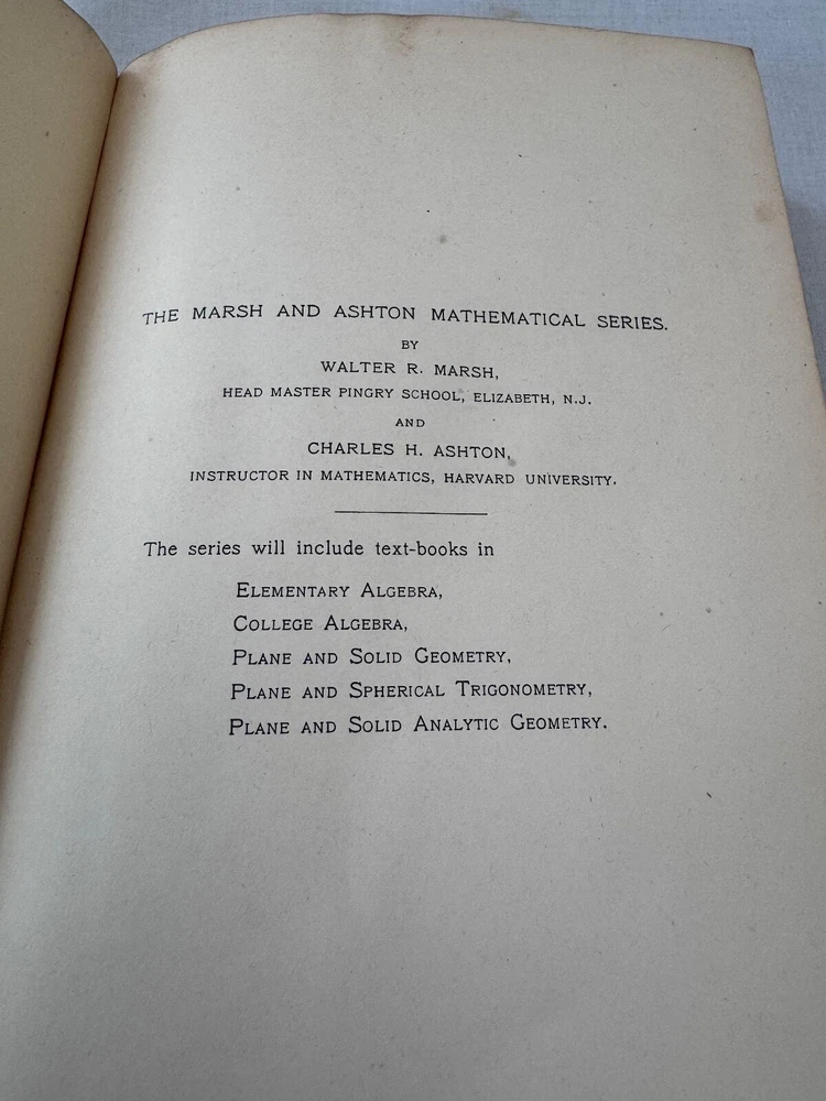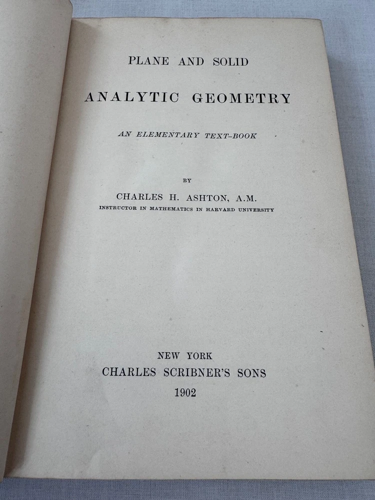 This vintage math textbook is a gem for collectors and enthusiasts! The 1902 edition of Plane and Solid Analytic Geometry by Charles H. Ashton is a fascinating piece of academic history. The blue and brown hardcover shows its age beautifully, with charming owner signatures and handwritten notes that add character. The compact 5.25x7.5 inch size makes it easy to handle, while the well-preserved content offers a glimpse into early 20th-century mathematical education. Though used, its sturdy binding has held up remarkably well over 120 years. A wonderful find for anyone who appreciates rare educational antiquities or wants to own a tangible piece of mathematical heritage.