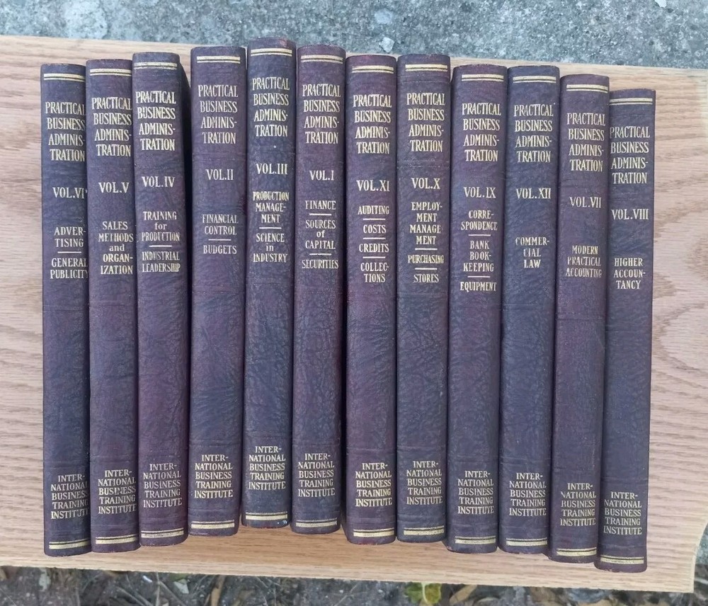 This 12-volume set is a must-have for anyone interested in business administration. The leather-bound books are packed with techniques and strategies for running a business effectively. The set includes a variety of topics such as business informatics, finance, marketing, and operations management. The books are written in American English and were originally published in 1934. This reprint edition is a great addition to any business library. The set weighs 12 lbs and has an estimate of 300 pages per volume. This collection is perfect for adult and vocational school students who want to learn more about business.