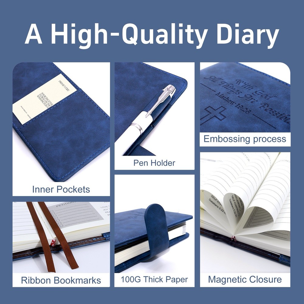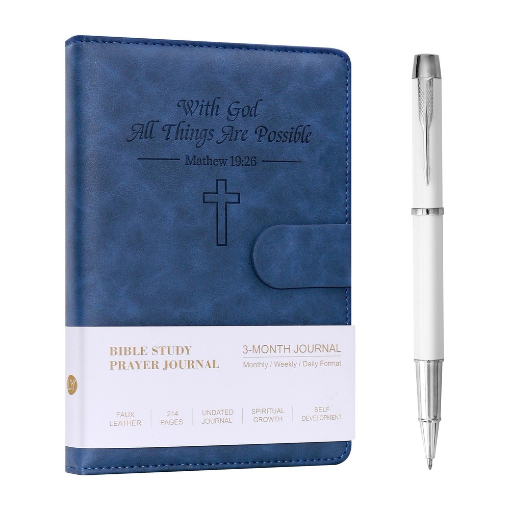 Prayer Journal – A Guided Path to Spiritual Growth & Reflection "With God, All Things Are Possible" – Matthew 19:26 Transform your spiritual journey with the Bible Study Prayer Journal, a beautifully designed 3-month undated journal that serves as a sacred space for deep reflection, scripture study, and personal growth. Whether you’re seeking clarity, strengthening your faith, or cultivating a more meaningful prayer life, this journal is designed to help you stay connected with God every day. 📖 A Thoughtfully Designed Interior for Spiritual Growth ✔️ Scripture Reflection Pages – Dive deeper into God’s Word with dedicated sections to write down key verses, insights, and personal interpretations. ✔️ Daily Prayer & Gratitude Journaling – A space to pour out your heart to God, express gratitude, and document answered prayers. ✔️ Guided Prompts for Spiritual Reflection – Thought-provoking questions to help you explore your faith, set spiritual goals, and find purpose. ✔️ Weekly & Monthly Check-ins – Keep track of your spiritual progress, challenges, and breakthroughs as you grow in faith. ✔️ Plenty of Writing Space – With 214 pages, you’ll have ample room for journaling, doodling, or jotting down revelations during prayer or Bible study. ✔️ Undated & Flexible Format – Use it at your own pace without pressure, making it perfect for any stage of your faith journey. ✨ Features & Benefits for Spiritual Development: ✔️ Elegant Faux Leather Cover – Luxurious, durable, and soft to the touch, embossed with an inspirational Bible verse as a daily reminder of God’s presence. ✔️ Built-in Pen Holder & Secure Magnetic Closure – Thoughtfully designed to keep your journal protected and ready for your next moment of inspiration. ✔️ Designed for Spiritual Growth – Helps you strengthen your faith, track answered prayers, and witness your spiritual transformation over time. ✔️ Perfect Gift for Him or Her – A meaningful and thoughtful gift for birthdays, holidays, Bible study groups, or anyone seeking spiritual renewal. 🎁 A Beautifully Packaged Gift of Faith & Reflection Arrives in a premium wood-textured gift box, elegantly wrapped with a satin ribbon—making it a ready-to-gift item for loved ones. 🌿 More than just a journal—it’s a daily companion for faith, reflection, and spiritual renewal. 🌿 💡 Ideal for: ✔️ Spiritual Growth & Faith Strengthening ✔️ Bible Study & Daily Devotions ✔️ Gratitude & Prayer Journaling ✔️ Church & Group Studies ✔️ Personal Self-Reflection & Healing Your faith deserves to be nurtured. Let this Prayer Journal be your guide to a stronger relationship with God, a renewed sense of peace, and a deeper spiritual connection. 📦 Ships Fast – Order Now & Begin Your Spiritual Journey Today!