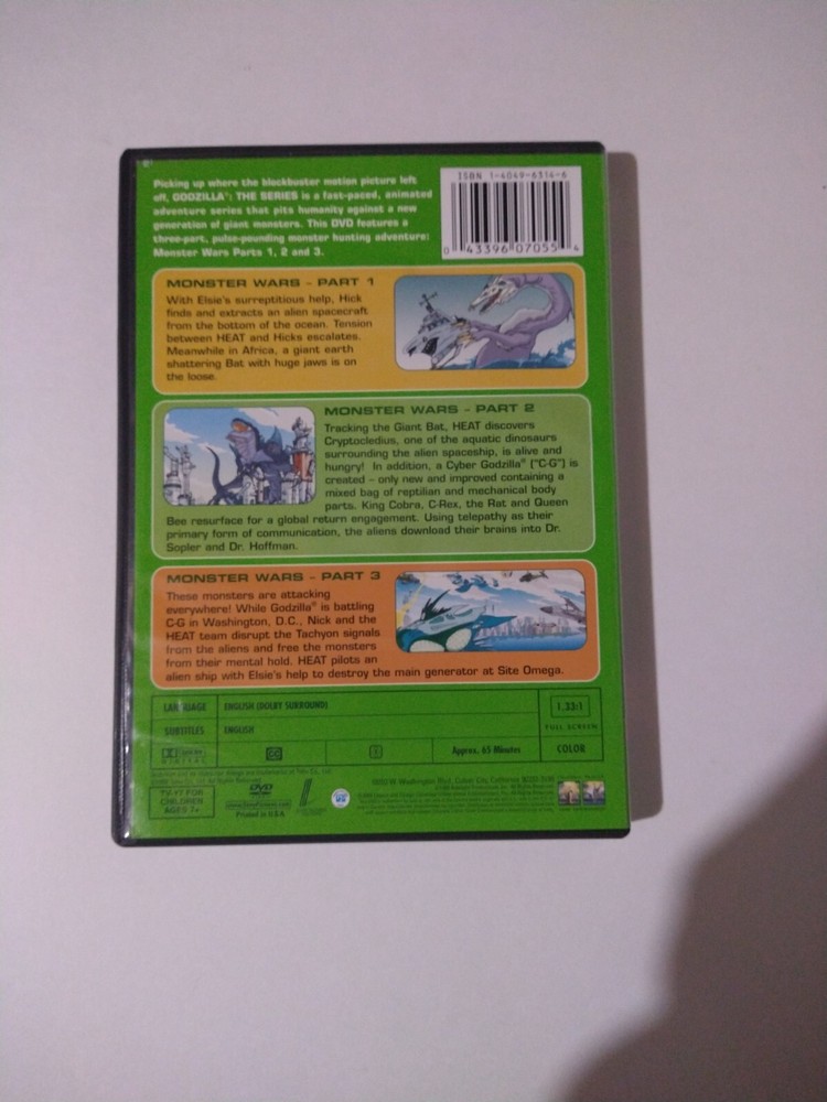 This DVD trilogy of Godzilla: The Series - Monster Wars is a must-have for any sci-fi and fantasy lover. Released in 2004, this NR-rated DVD features thrilling TV shows that will keep you on the edge of your seat. The DVD is in excellent shape, guaranteeing a smooth viewing experience. Excellent Condition!!! Clean 🫧🫧🫧🫧!!! Perfect for Monster War Trilogy Collection!!! Please 🙏 Follow/Check Out Our Other Glorious Items and feel free to contact us with offers and questions!!! The movie/TV title is prominently displayed on the cover, and the format is DVD. This DVD belongs to the Movies & TV and DVDs & Blu-ray Discs categories. Get ready to enjoy hours of entertainment with this fantastic Godzilla: The Series - Monster Wars Trilogy DVD.