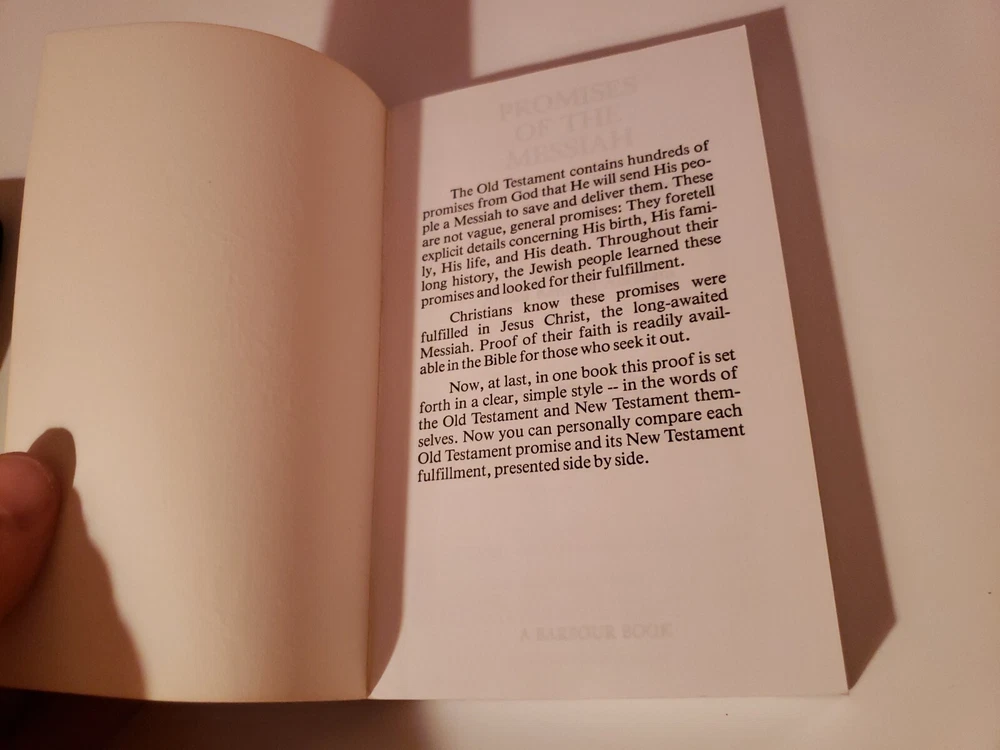 Promises of The Messiah: New Testament fulfillment of Old Testament Prophecies. The book has no markings in it whatsoever