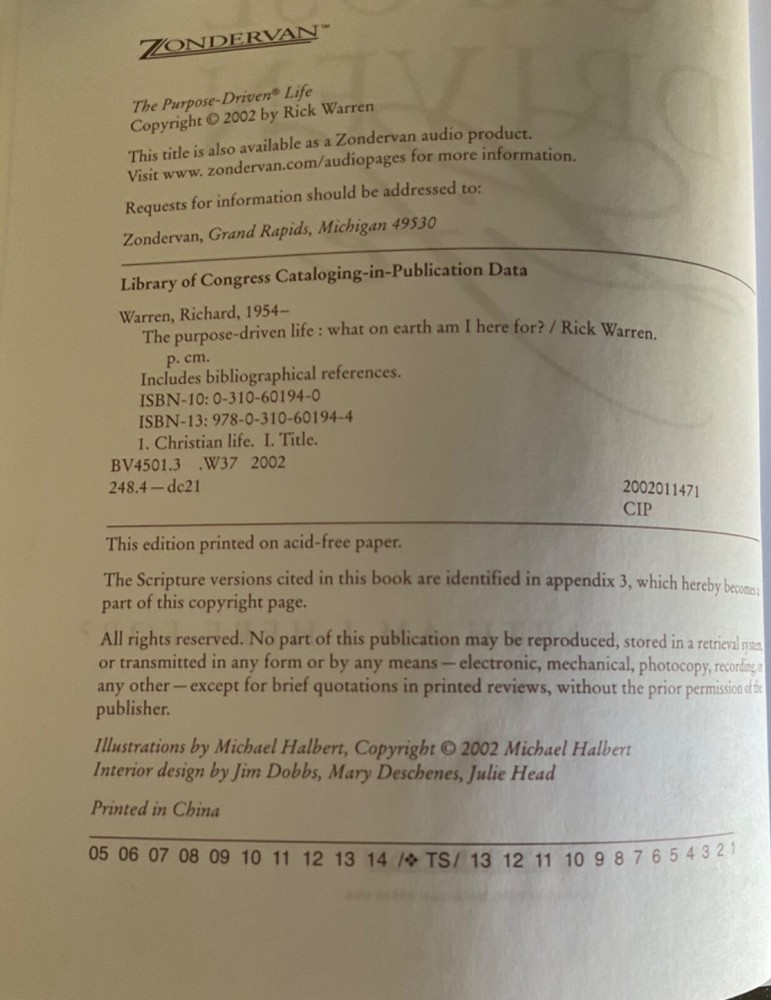 | Book Title | The Purpose Driven Life |