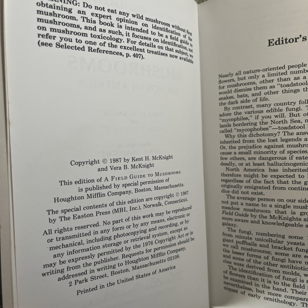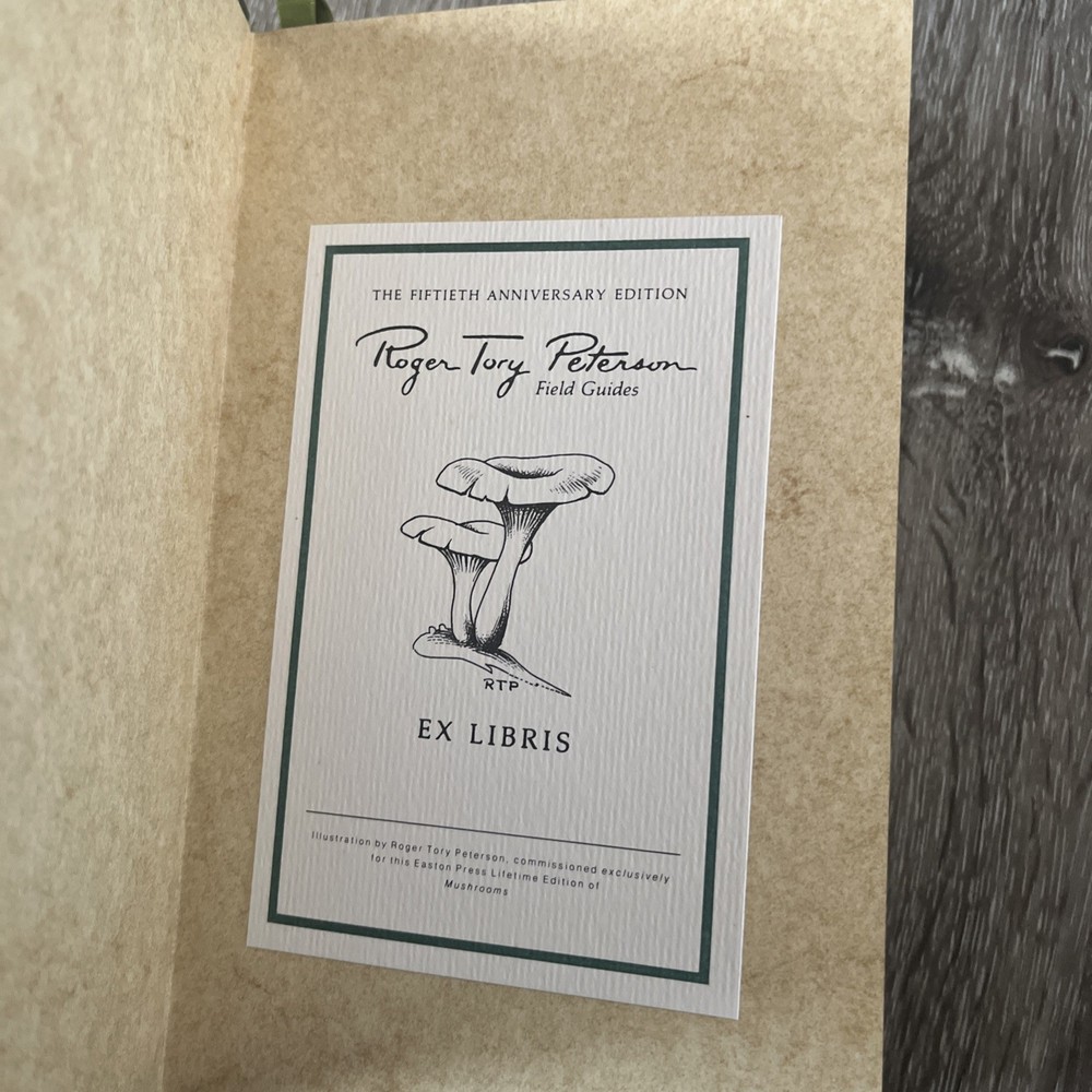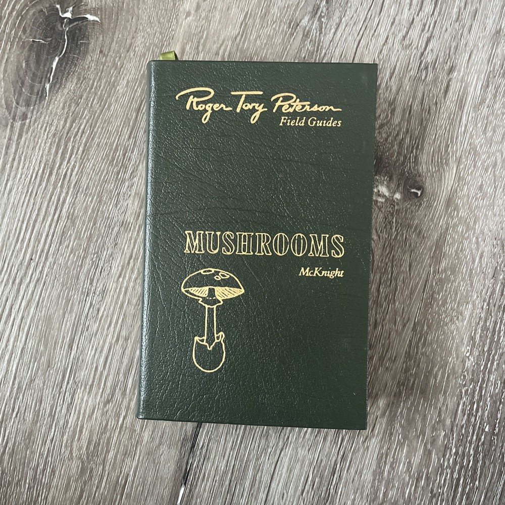 This is a 50th Anniversary edition of the Roger Tory Peterson Field Guide to Mushrooms by McKnight. It is a hardcover book with a leather binding published by Easton Press. The book is written in English and is an original copy. It is categorized under Books & Magazines and Antiquarian & Collectible. The book covers the topic of mushrooms and is suitable for those interested in outdoor and nature subjects. The book was manufactured in the United States. Great condition