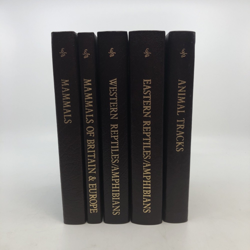 Please review images. Titles in the series are: 1. Mammals 2. Mammals of Britain & Europe 3. Western Reptiles/Amphibians 4. Eastern Reptiles/Amphibians 5. Animal Tracks 4 of 5 have the unused book plate. 1 book plate is attached to cover with previous owner’s name. Condition is excellent and open as if unread. One condition exception is shown in an image where on one book the corner of some pages are imperfect, slightly bent.