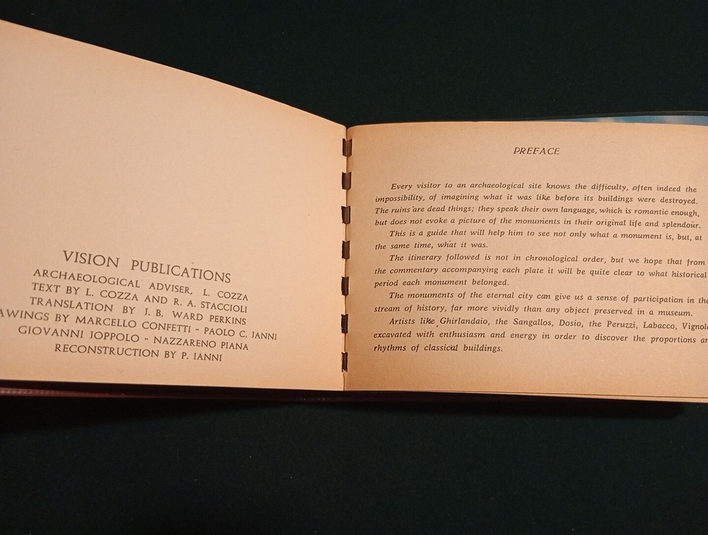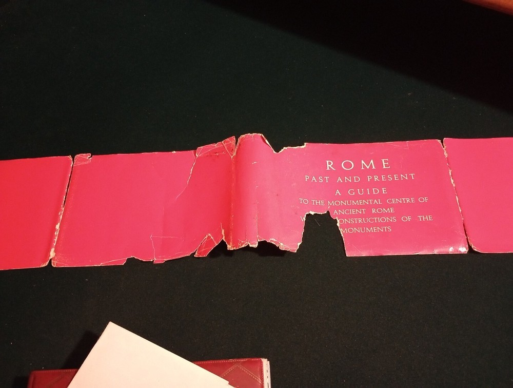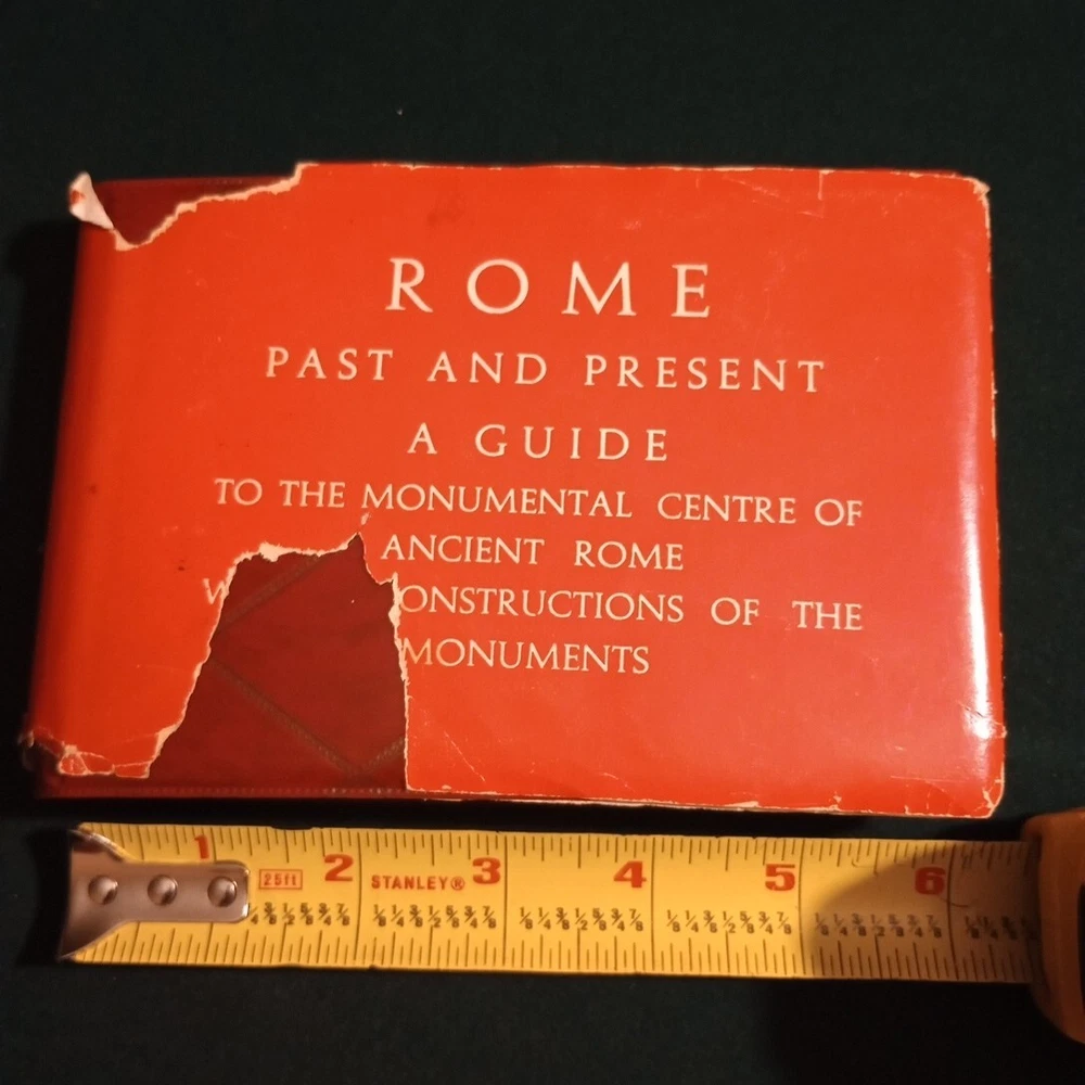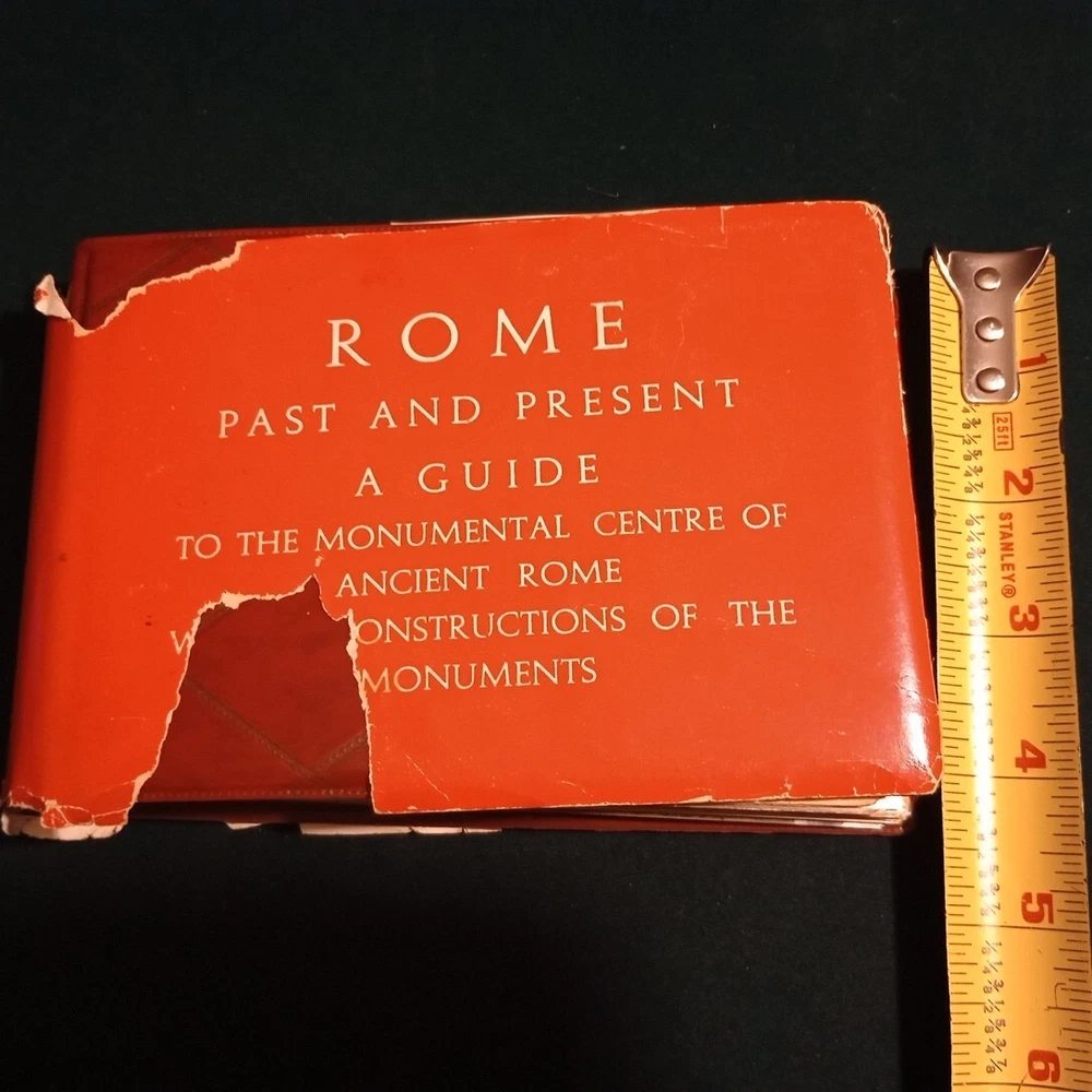 Discover the rich history of ancient Rome with this leather-bound guidebook, "ROME Past and Present." Written by L. Cozza and R. A. Staccioli, this illustrated book features a fold-up map and special attributes that make it a valuable collectible for any history enthusiast. The English language guidebook was published by Vision Publications and manufactured in Italy. May been produced for tourists. The book provides a comprehensive overview of Rome's monumental center, offering a glimpse into the city's past and present. The leather jacket adds to its unique appeal, making it a must-have for anyone interested in antiquarian and collectible books. The dust jacket is in tatters but the leather cover is nice and all the pictures and overlays are in very good condition. We can combine shipping on multiple purchases. Give wulf a hoowwwller. Offers are considered. Follow wulf6221 to check for new listings every day. A hooowwwllll of a good deal!