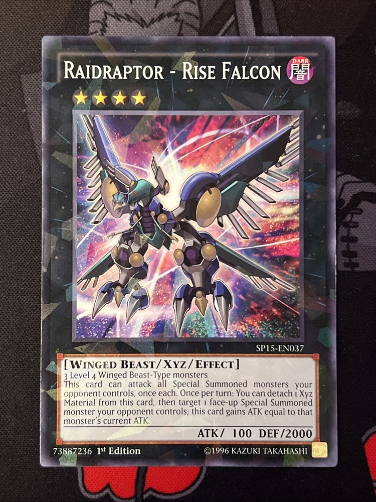 Elevate your Yu-Gi-Oh! TCG collection with the Raidraptor - Rise Falcon SP15-EN037, a sought-after Shatterfoil Rare card from the Star Pack Arc-V set. As a 1st Edition piece, it holds a special place for collectors and players alike. The card features the formidable Dark attribute and stands out with its Winged Beast creature type, ensuring it's a powerhouse in both collection and competition. With an attack power of 100 and a defense strength of 2000, this Effect and Xyz card is engineered for battle. Produced by Konami and presented in English, Raidraptor - Rise Falcon is a must-have for gamers looking to make an impact in their next duel or for enthusiasts seeking to add a rare and powerful card to their arsenal.