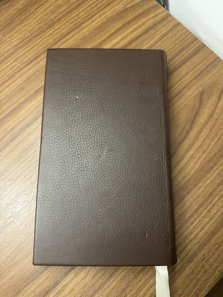 Beautiful rarely seen, leather bound Tommy Bahama 6th Edition. Leather cover has some dings as seen I. Pictures but the pages are pristine. Ribbon has a couple bends as seen in pictures.