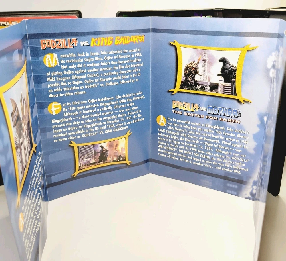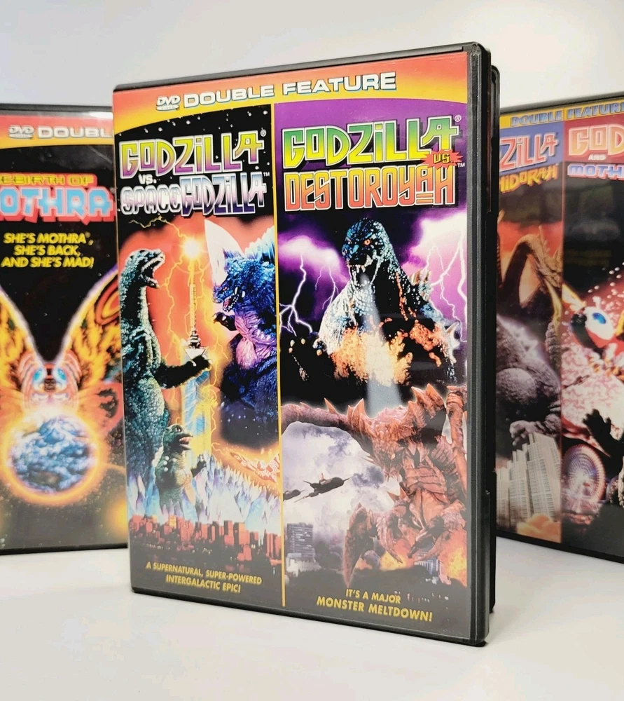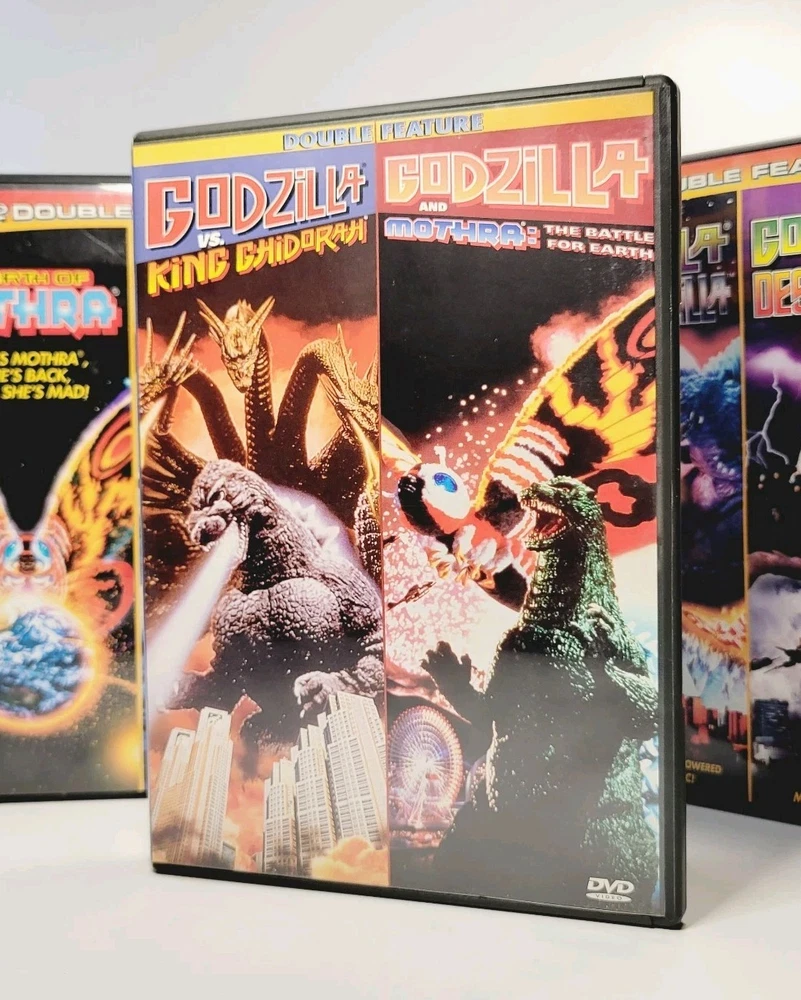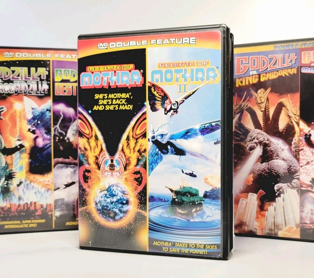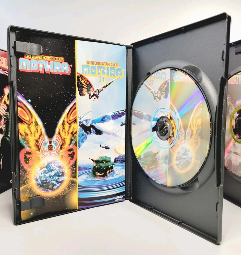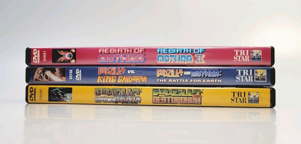 Rebirth of Mothra I & II, Godzilla vs SpaceGodzilla, Godzilla vs King Ghidorah Lot of 3 Double Feature DVD, 2000, Tri Star Release with Inserts. Condition is Very Good/ Great with light wear/ no major scuffs or scratches on discs/ Near New (See Pictures, as depicted) tested working condition with no stickers non-rental. Case and Artwork are in great shape with light wear, clean smoke-free. Shipping is free with great protection and tracking information provided. Message me with any questions. All items for sale are authentic, buy with confidence. Thank you