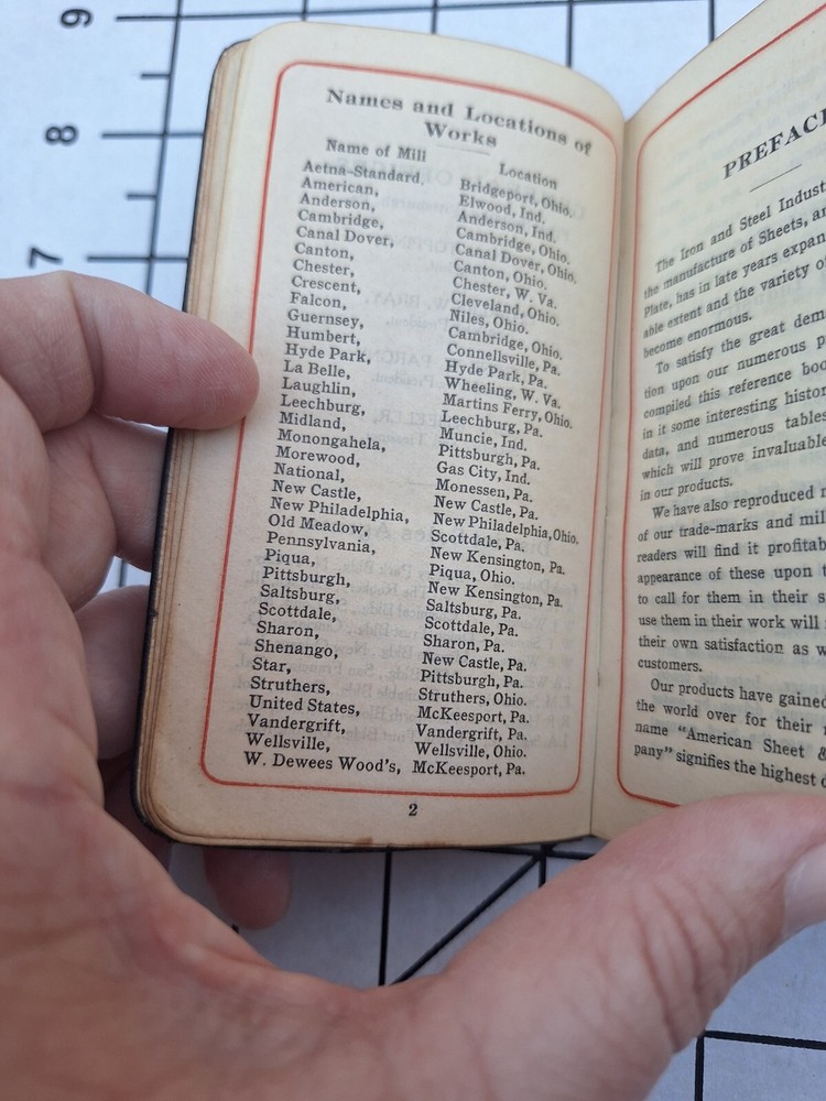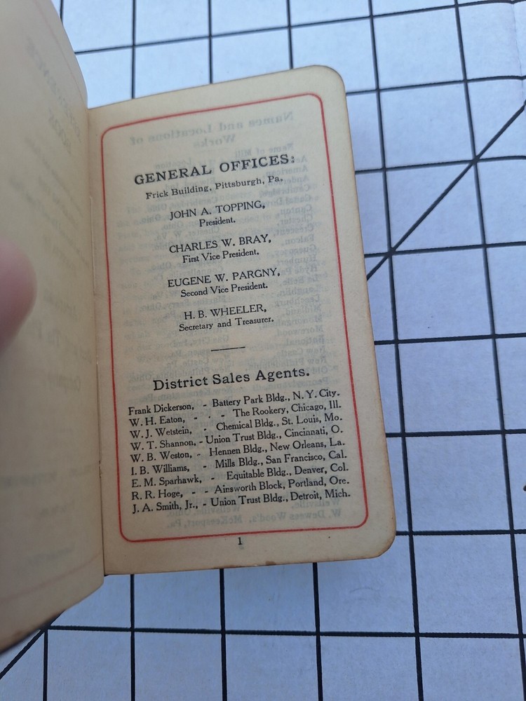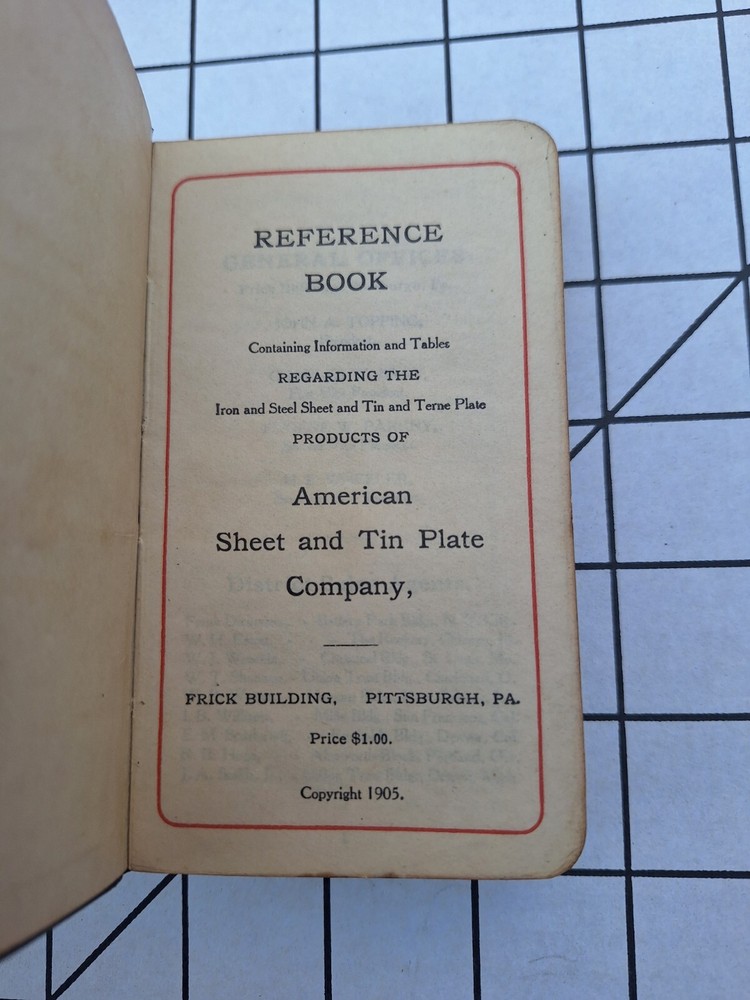 In very good condition 1905 Spine is weak in some parts, see photo Gold edge In good overall condition One a rare and unique piece of history A guide for a metal salesman during the steel industry peak