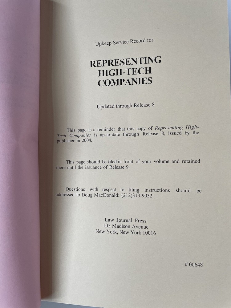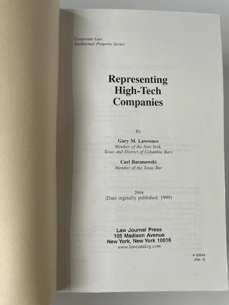This Law Journal Press study guide, titled "Representing High-Tech Companies" by Gary M.L and Carl B., is a valuable resource for those interested in the legal aspects of high-tech business. The book is part of the Corporate Intellectual Property Series and provides an advanced and business-level education for adults and further education.