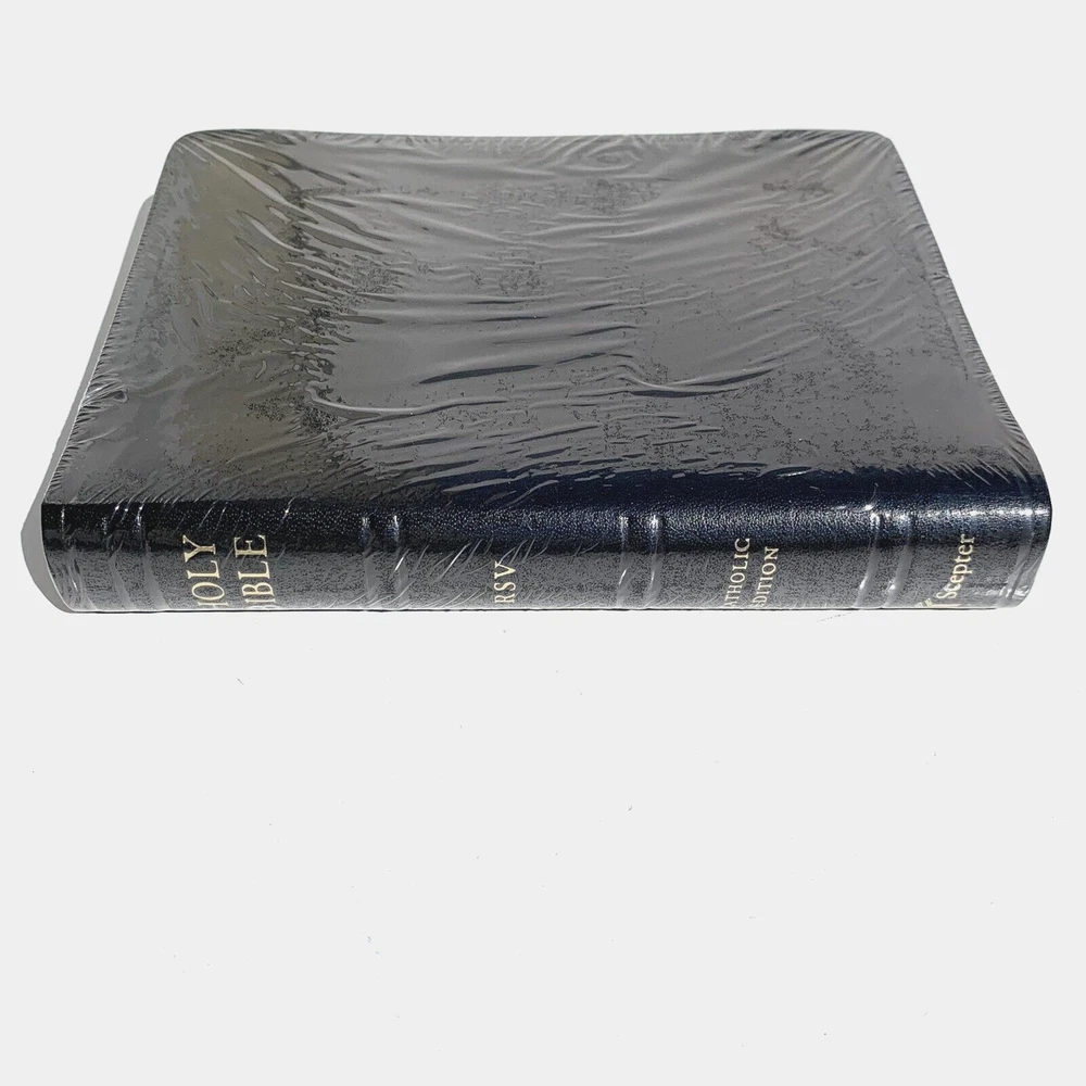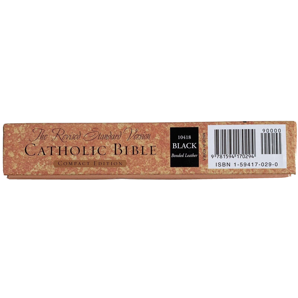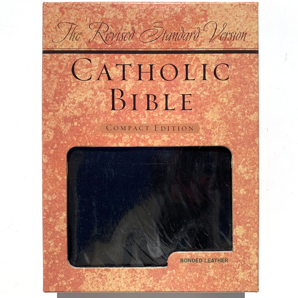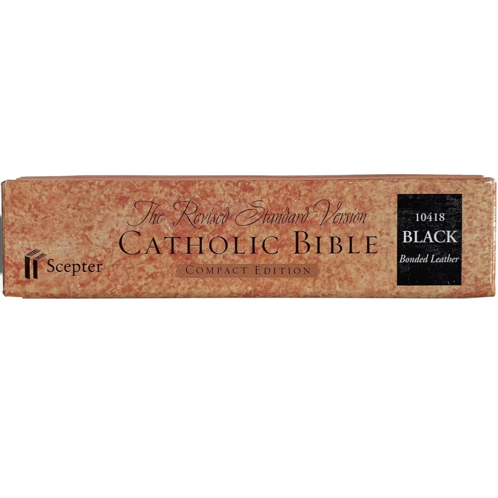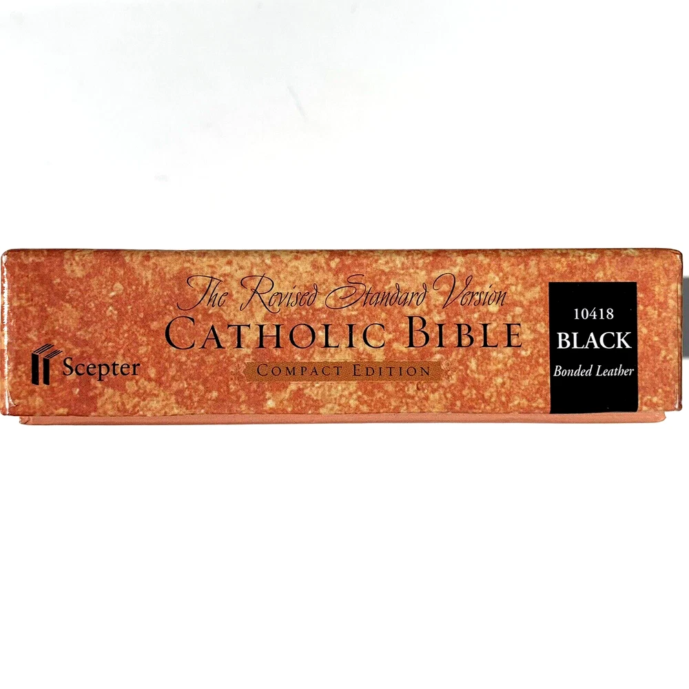 Revised Standard Version Catholic Bible Compact Edition Black Leather 1594170290 RSVCE Christian Bible Publisher : Scepter; Revised edition Publication Date : 2004 Language : English Bonded Leather Bound : 1250 pages color: black ISBN-10 : 1594170290 ISBN-13 : 9781594170294 Weight : 1.12 pounds Dimensions : 5.25 x 1.25 x 6.75 inches "This handsome leather-bound edition, co-published with Oxford University Press, features a Presentation Section, the Dogmatic Constitution on Divine Revelation (Dei Verbum), a section of Prayers and Devotions of the Catholic Faith and a table of Weights and Measures in the Bible. It comes with gilded paper, ribbon, and an easy, lay-flat bonded leather binding." condition: new in box, minor shelf wear to box Ships via USPS Priority Mail with Signature Confirmation. COMBINED SHIPPING IS AVAILABLE FOR THIS ITEM.