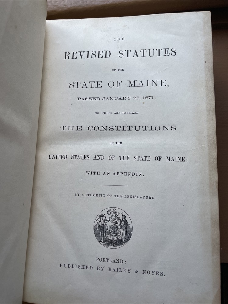 Revised Statutes of Maine 1871 Legal Text Law Book leather bound....