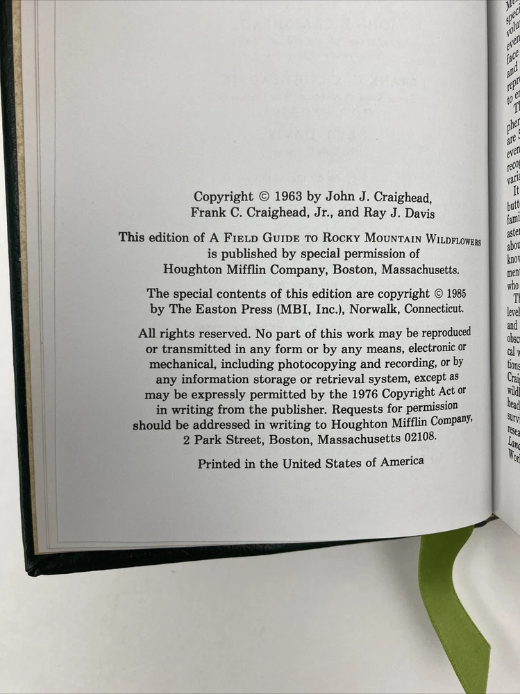 Rocky Mountain Wildflowers, EASTON PRESS, Roger Tory Peterson Field Guides, 50th Anniversary Edition, Leather bound, Collector's Edition, Illustrated GOOD CONDITION -- CLEAN COPY/NO MARKINGS ON THE INSIDE (see pics) *Item will be protected well for shipping and comes with a tracking number for confirmation.* I ship out items every day so expect a quick delivery!