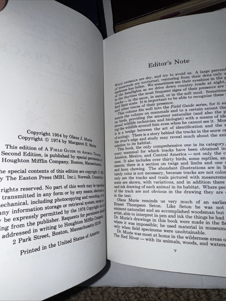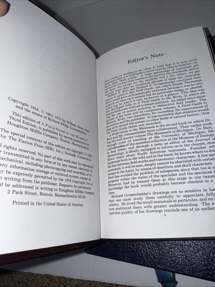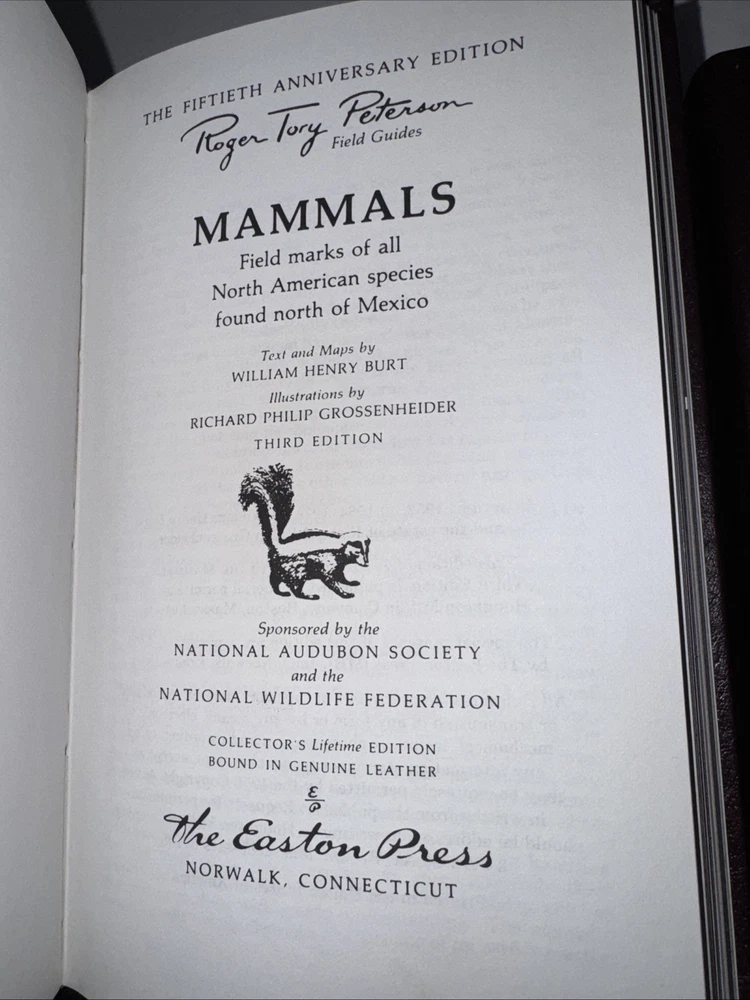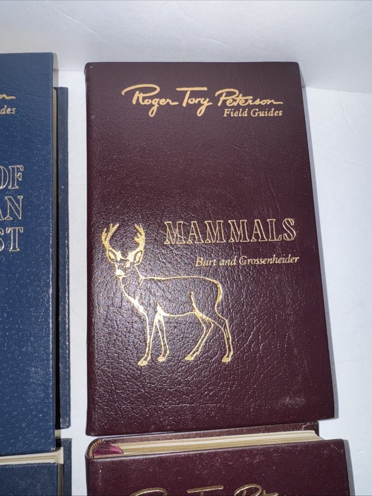 Explore the natural world with this 4-book lot of Roger Tory Peterson Animal Field Guides from Easton Press. These beautifully bound leather books are filled with illustrations and information on a variety of North American animals. Whether you're an avid outdoorsperson or just love learning about the natural world, these field guides are a must-have. Each book is a facsimile edition and features special attributes such as collector's edition and illustrated. The books are in excellent condition and would make a great addition to any collection. Get your hands on these timeless pieces of nature literature today!
