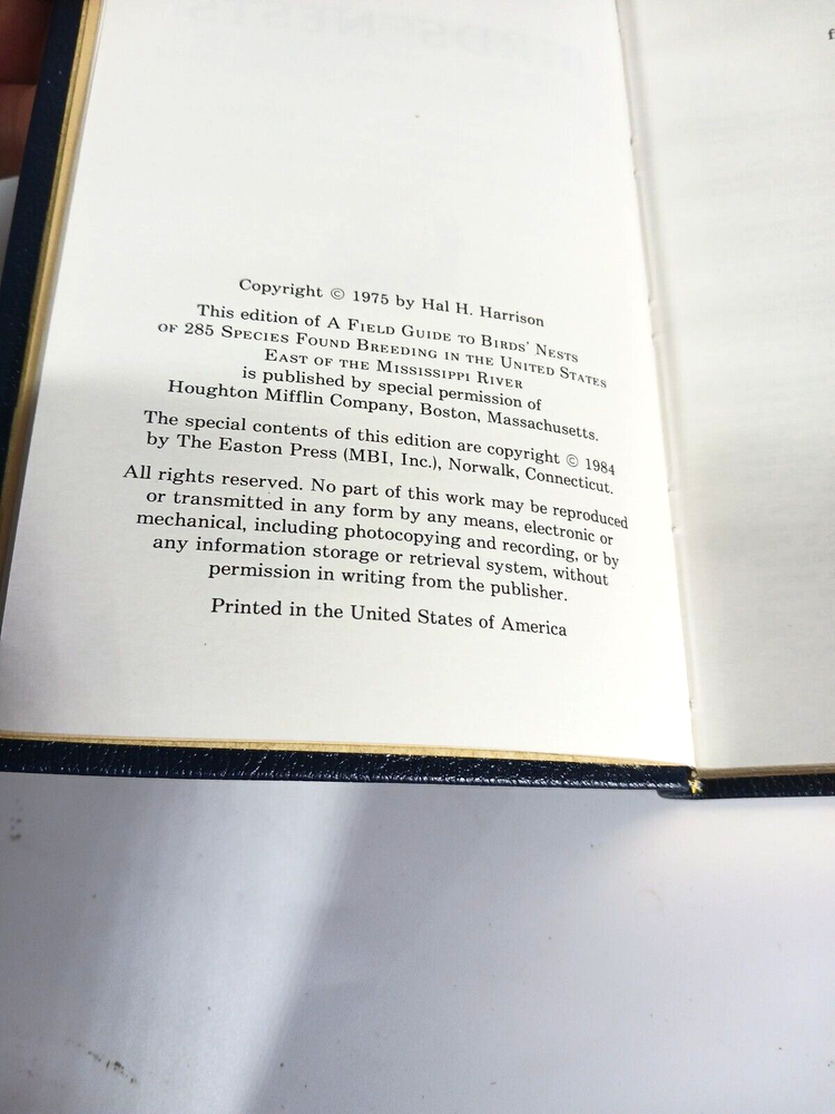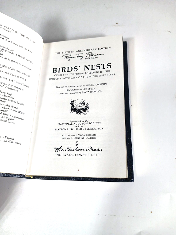 1984 Roger Tory Peterson Eastern Birds Nests of the United States East of the Mississippi River. Easton Press. 50th Anniversary edition. Leather binding. Bookplate included. Gilt edge. Satin ribbon bookmark. 5" x 7 5/8"