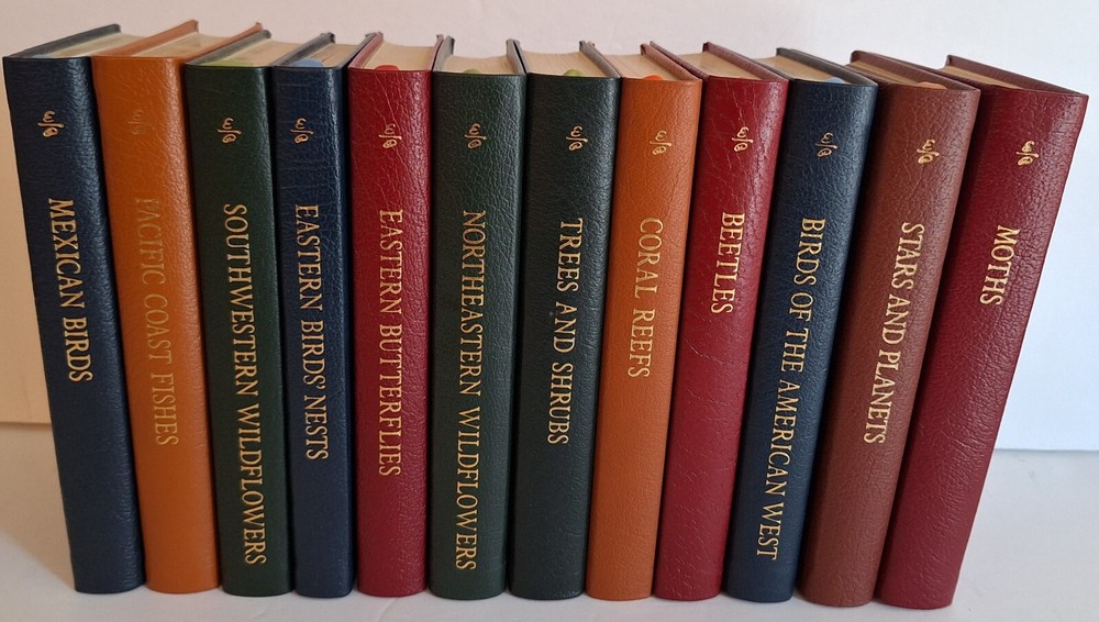 Easton Press, Roger Tory Peterson FIELD GUIDES, 12 Volumes in excellent, display condition. Leather Bound, Gold Gilt, Lifetime Collector's Edition . Please view photos. 1. Southwestern and Texas Wildflowers by Niehaus and Ripper and Savage 2. Northeastern Wildflowers by Peterson and McKenny 3. Trees and Shrubs by Petrides 4. Eastern Birds' Nests by Harrison 5. Birds of the American West by Peterson 6. Mexican Birds by Peterson and Chalif 7. Coral Reefs by Kaplan 8. Pacific Coast Fishes by Eschmeyer and Herald and Hammann 9. Stars and Planets by Pasachoff 10. Eastern Butterflies by Opler 11 Moths by Covell 12. Beetles by White