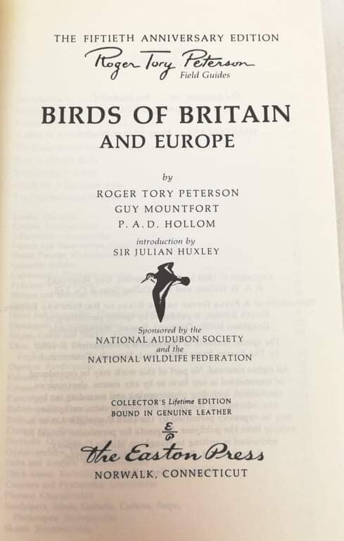 For sale we are offering a Roger Tory Peterson Field Guides, Birds of Britain and Europe , leather bound. Peterson Mountfort Hollom