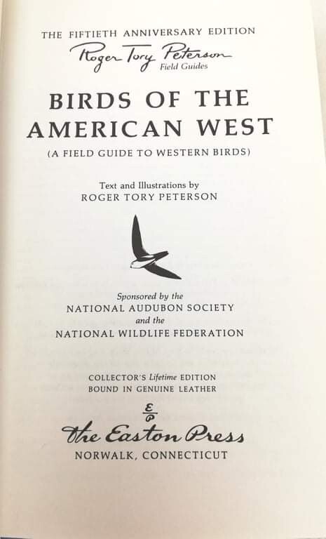 For sale we are offering a Roger Tory Peterson Field Guides, Birds of The American West , leather bound. Leather Bound, Collectors lifetime Edition....