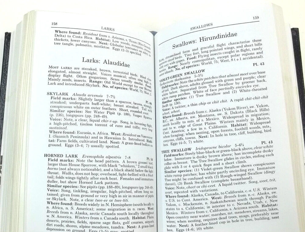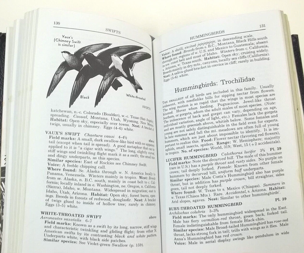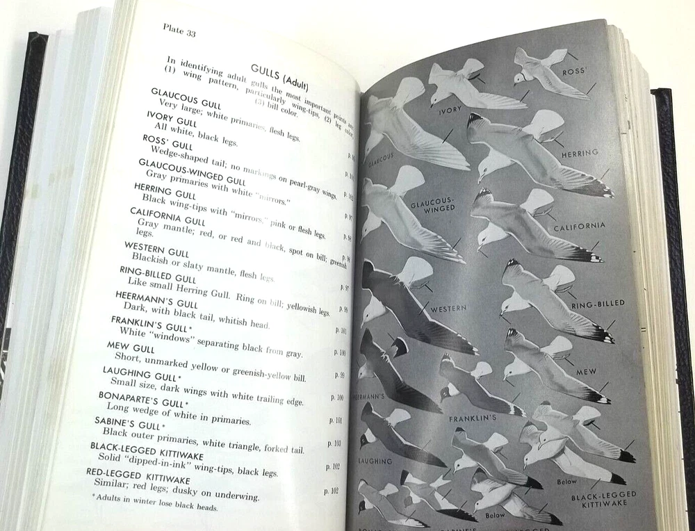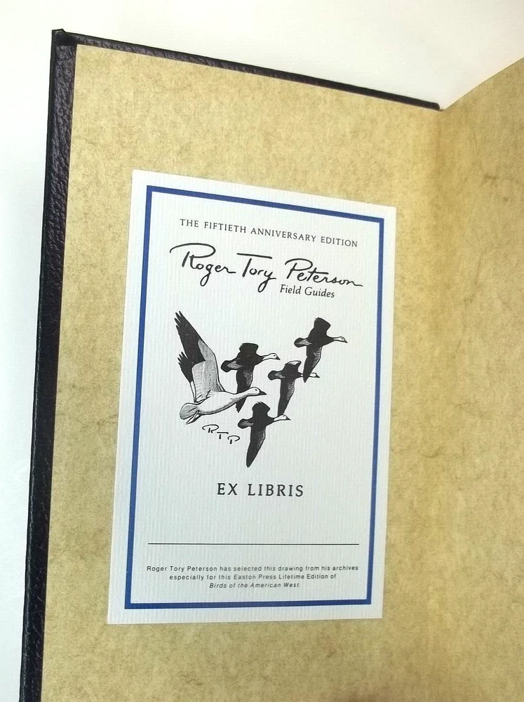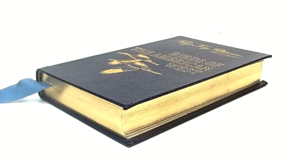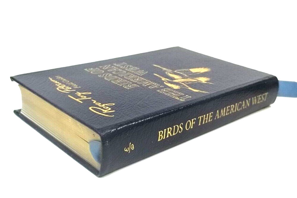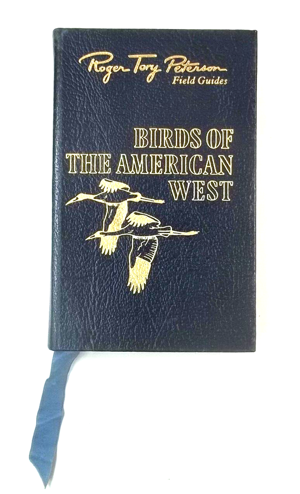 This is a leather-bound book with ribbon marker , Birds of The American West, a Roger Tory Peterson Field Guide, 1984, text and illustrations by the author, Peterson. It has 309 pages with gild ed gold edges with information on all kinds of birds of the American West. It is in very nice, clean, solid condition. It comes with the Fiftieth Anniversary Edition card on the inside front cover. Buyer to pay with Ebay approved method. Buyer to add $3.99 for Media Mail shipping and tracking within the USA only.