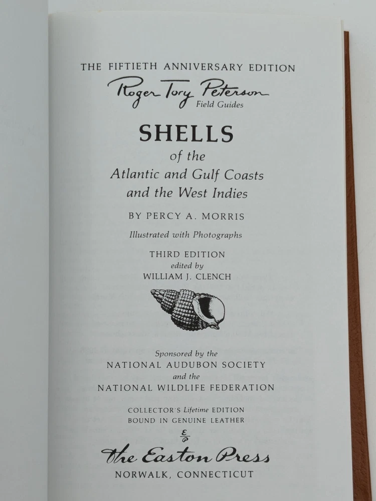 Roger Tory Peterson Field Guides ATLANTIC SHELLS 50th Anniversary Ed 1986 Leather bound hardback with gilt edged pages and ribbon bookmark Near mint condition except for slight discoloring of ribbon bookmark and very light marks on cover Please look carefully at photos Thanks for looking!