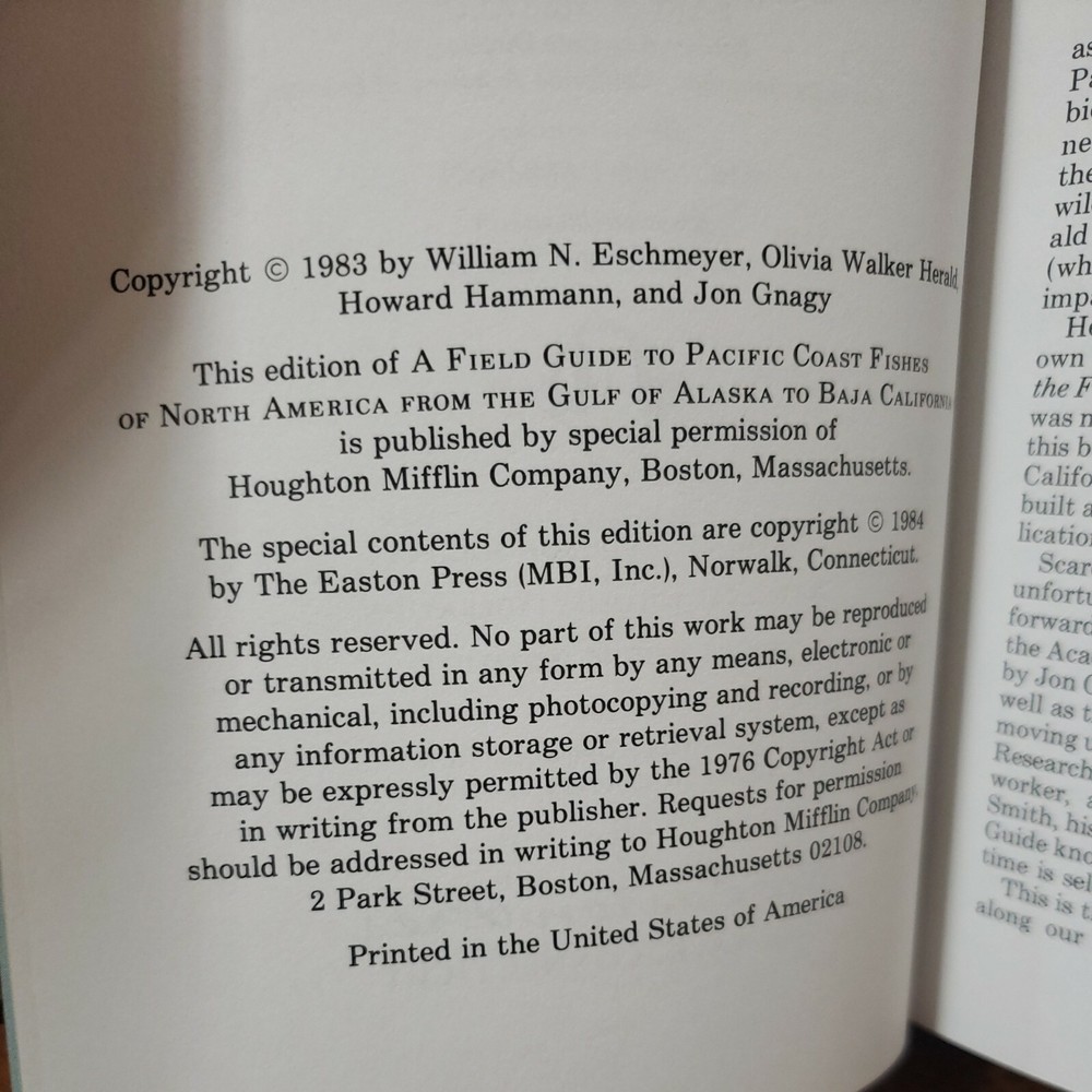 Roger Tory Peterson Field Guides--Pacific Coast Fishes--Text and Illustration by Eschmeyer, Herald and Hammann- Excellent condition.
