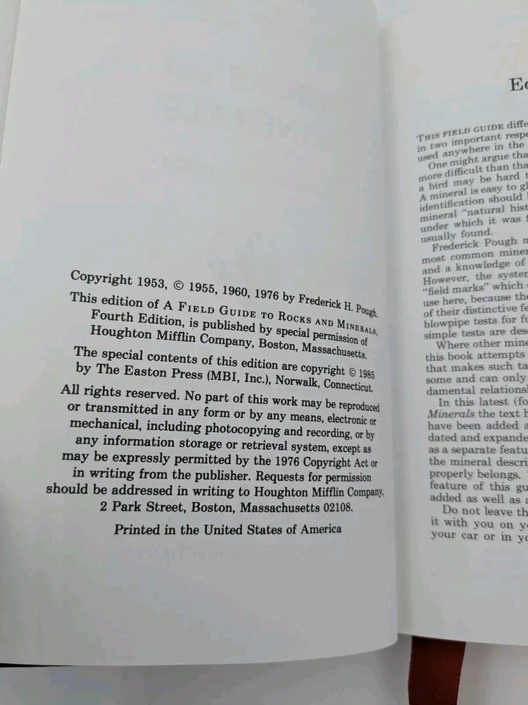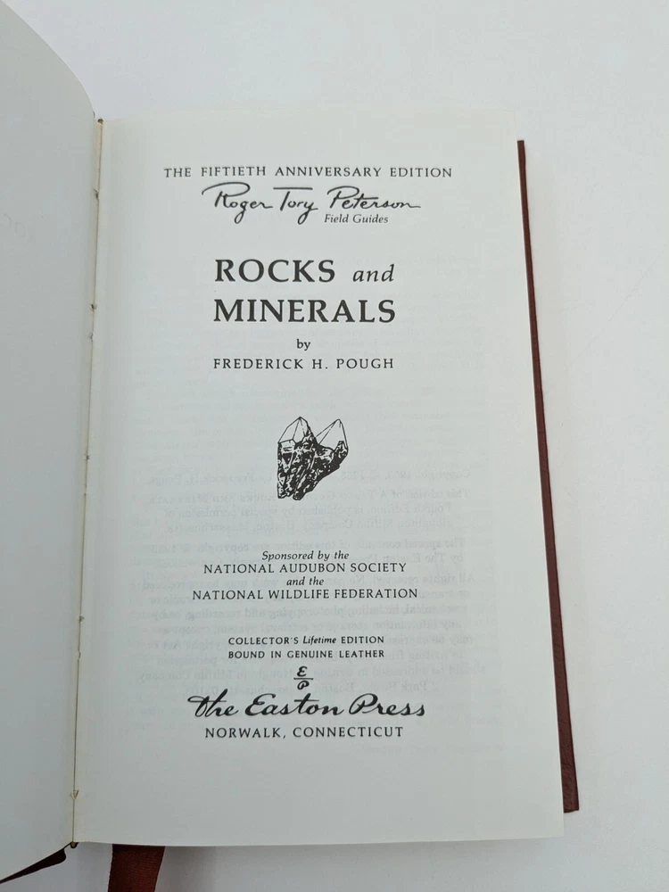 Roger Tory Peterson Field Guides ROCKS AND MINERALS 50th Anniversary Ed 1985 Leather bound hardback with gilt edged pages and ribbon bookmark Near mint condition Please look carefully at photos Thanks for looking!