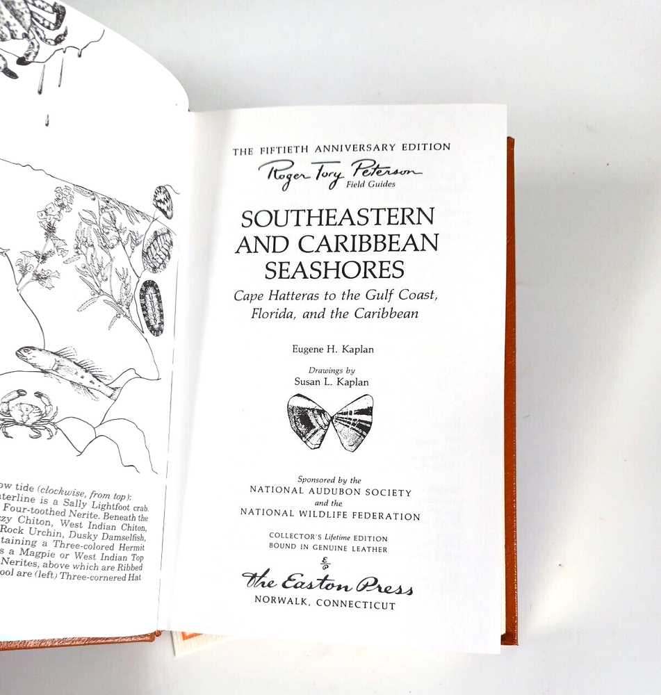 1984 Roger Tory Peterson Southeastern and Caribbean Seashores. Easton Press. 50th Anniversary edition. Leather binfding. Bookplate included. Gilt edge. Satin ribbon bookmark. 5" x 7 5/8"