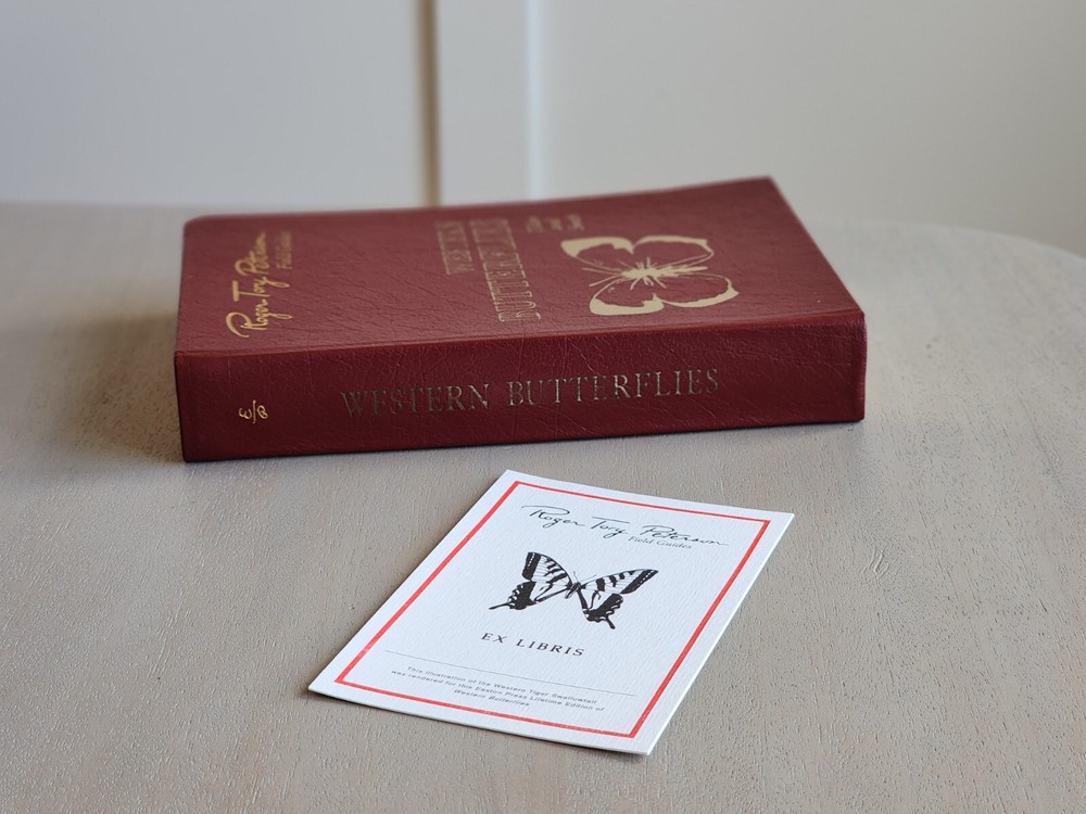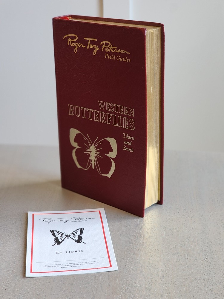 This is a collector's edition of the Roger Tory Peterson Western Butterflies Field Guide. The book features beautiful illustrations of Western butterflies and is bound in leather. The edition celebrates the 50th anniversary of the book's initial publication. The guide is an original and is published by Easton Press. It is a must-have for any nature lover or collector of rare books.