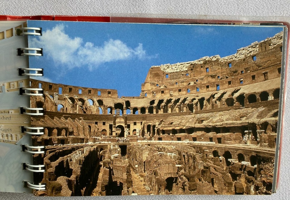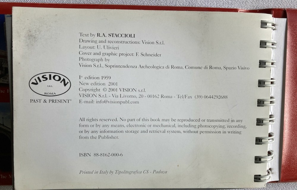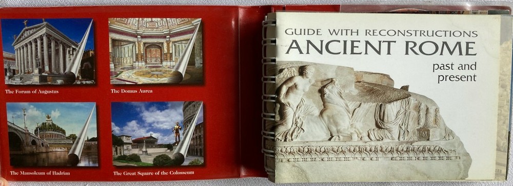 Rome Monuments Past and Present Guide With Reconstructions by R.A. Staccioli with CD 98 pages Vision Roma Monuments are shown as they exist today and with a clear overlay that shows the past structure. Great for travelers or homeschoolers. Used, good condition. Cover has normal wear. Interior good. No writing, stains or tears. CD included.