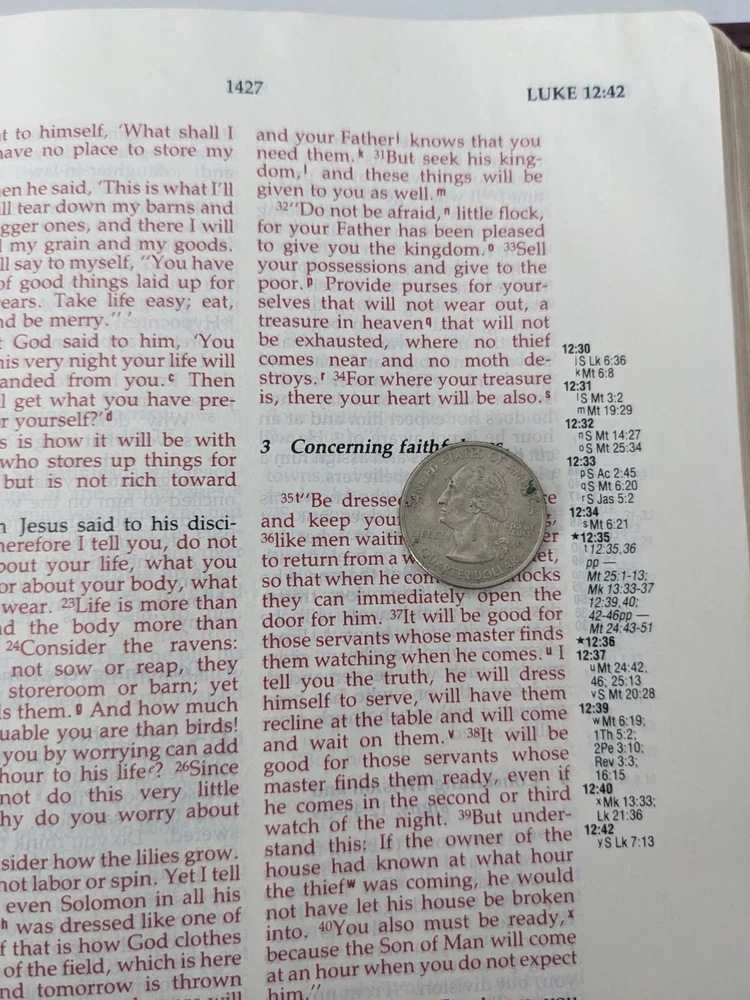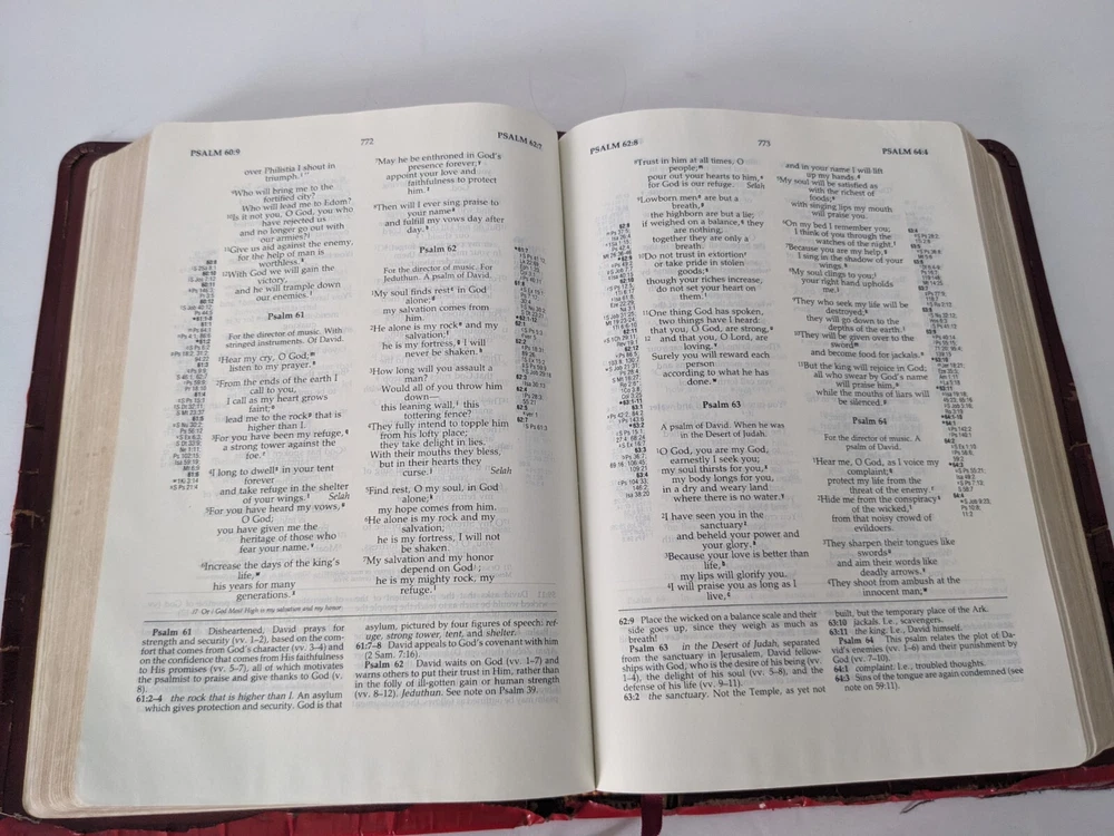 Prompt response with question regarding Bible. Items was just as described and a great price for the condition.Thank you for the prompt shipping, received sooner than I was expecting. Careful packaging was much appreciated. This was just what I was looking for. Perfect Bible for travel and everyday use. Everything you did to get this to me in a timely manner was most appreciated.