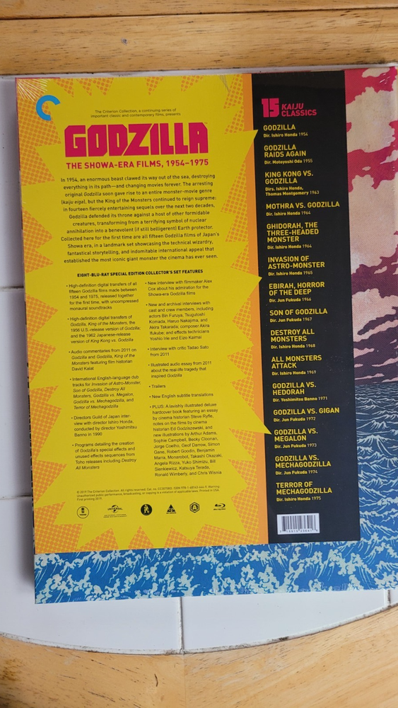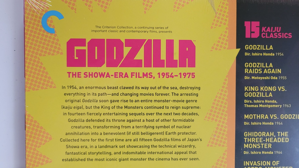 | Film/TV Title | Godzilla: The Showa-Era Films, 1954-1975 (Criterion Collection) |