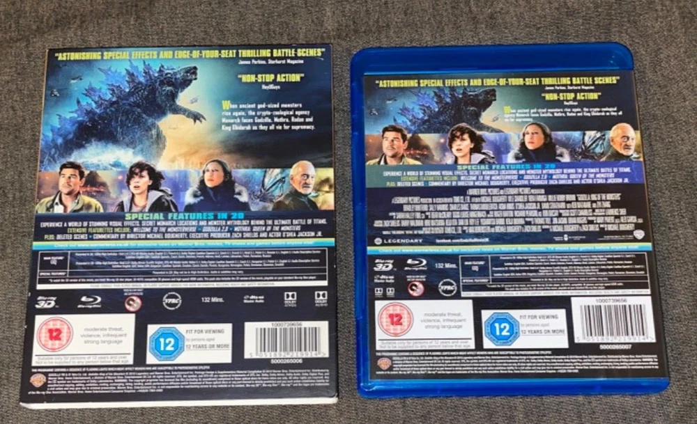 Item: Godzilla King of the Monsters Label: Warner Bros (2-disc set consisting of the 2D/3D version, insert, region free ) UPC: 5051892219914 Director: Michael Dougherty Country of release: UK, likely (2019) Condition: Discs are near mint, slipcase is VG++ Postage (tracking number): E verywhere: $15.00 Combined shipping possible: Next 6 Blu-ray discs in package ship for free. Overpaid postage will be refunded. European sales include 21% Dutch VAT.