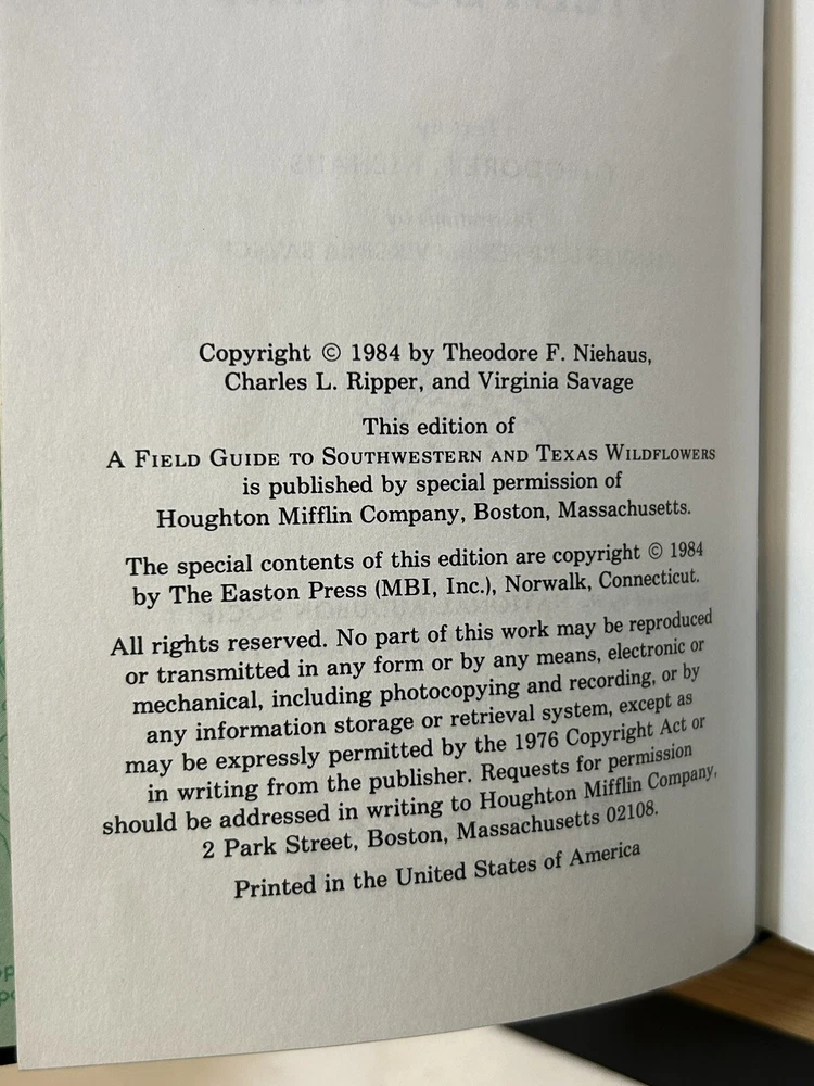 This nature field guide by Roger Tory Peterson is a must-have for anyone interested in Southwestern and Texas Wildflowers. Published by Houghton Mifflin Company in 1984, this original edition is a great addition to any collection. The book is bound in leather and features beautiful illustrations of the wildflowers found in North America. The guide includes detailed information on the wildflowers, their origins, languages, special attributes, and more. It is a great resource for outdoor and nature enthusiasts, and a perfect gift for anyone interested in the topic. This book is a rare find and a valuable addition to any library.