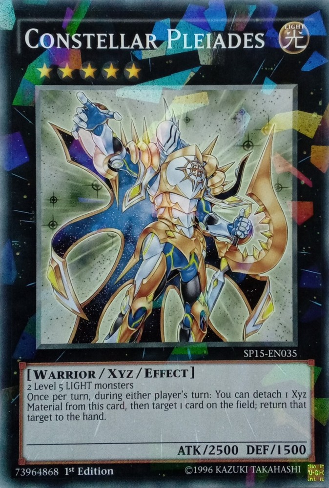 SP15-EN035 CONSTELLAR PLEIADES SHATTERFOIL RARE 1ST EDITION ALL YU-GI-OH CARDS I SELL ARE KONAMI TOURNAMENT LEGAL. CARDS ARE ALL NEAR MINT TO LIGHTLY PLAYED CONDITION POSTAGE IS FREE SO YOU CAN BUY AS MANY CARDS AS YOU WANT FROM US AND NOT PAY A PENNY POSTAGE. IF YOU HAVE ANY QUESTIONS PLEASE FEEL FREE TO CONTACT ME. Track Page Views Wi4.9 Auctiva's FREE Counter