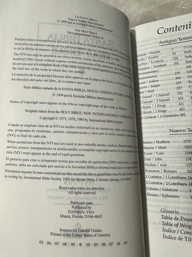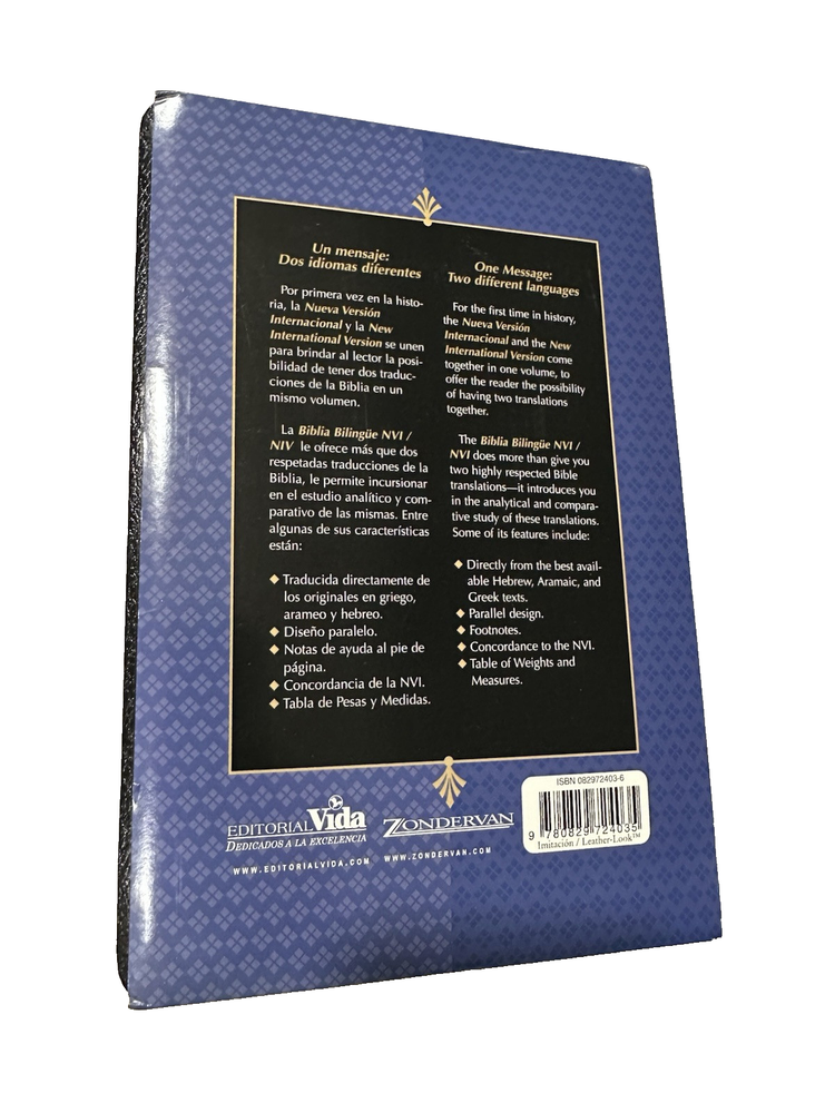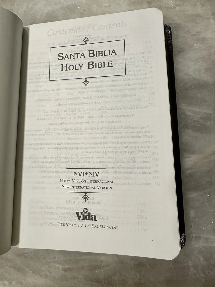 Santa Biblia Holy Bible Bilingual Spanish & English New International Version Please Note: This is a pre owned book in overall like new condition - NO writing, NO highlighting NO underlining in book . Dust jackets may not be included. Used books has some markings. And edge wear .please read description . All books have our company stamp in them. NOTE: NO RETURN ON TEXT / STUDENT BOOKS. please view all photos for a better visual description. Sold As Shown Please message me with any questions. I have no problem with combined shipping - just let me know. We list great items weekly, so please take a look at our other listings. *******International Buyers all sales are final.***** we ship vie eBay's global shipping program. Thanks for Stopping By and Happy Shopping :)