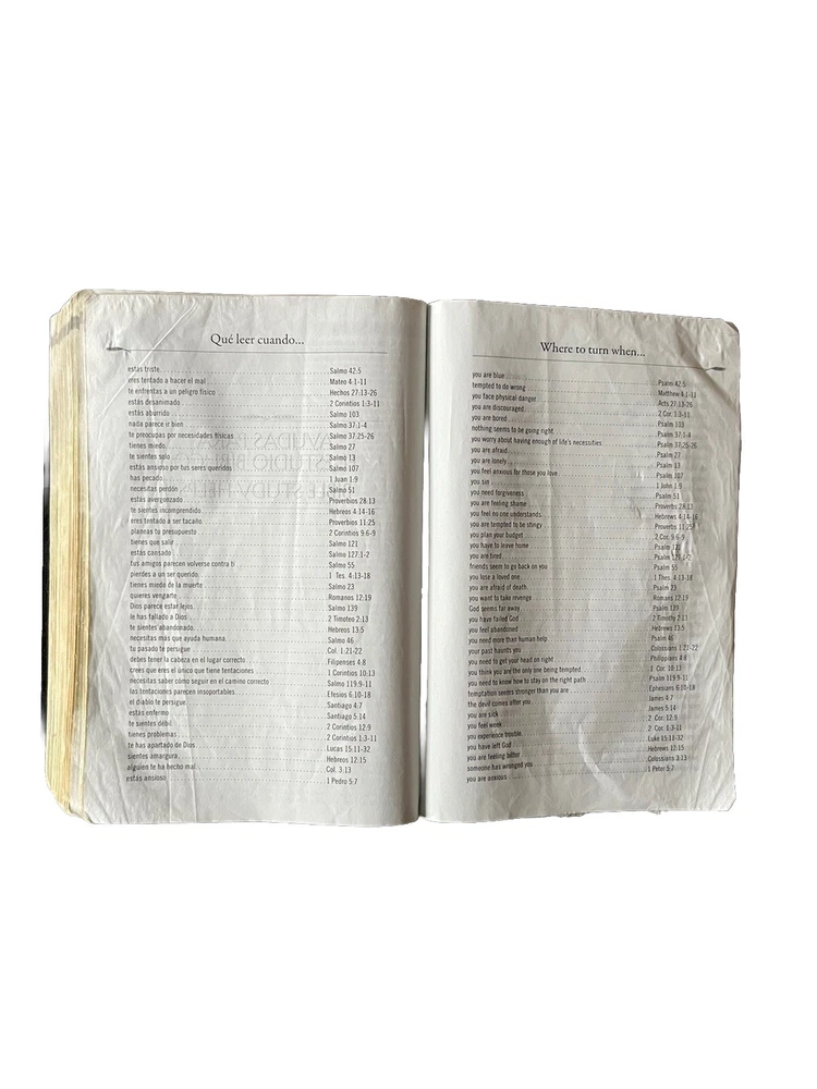 This bilingual Bible is a great find for anyone looking for a Spanish-English edition! Despite some wear on the spine and minor creases, the text is clean with no markings, and the binding is still strong. Perfect for daily reading or study, and the shipping is reliable with good packaging. A solid choice at a fair price!