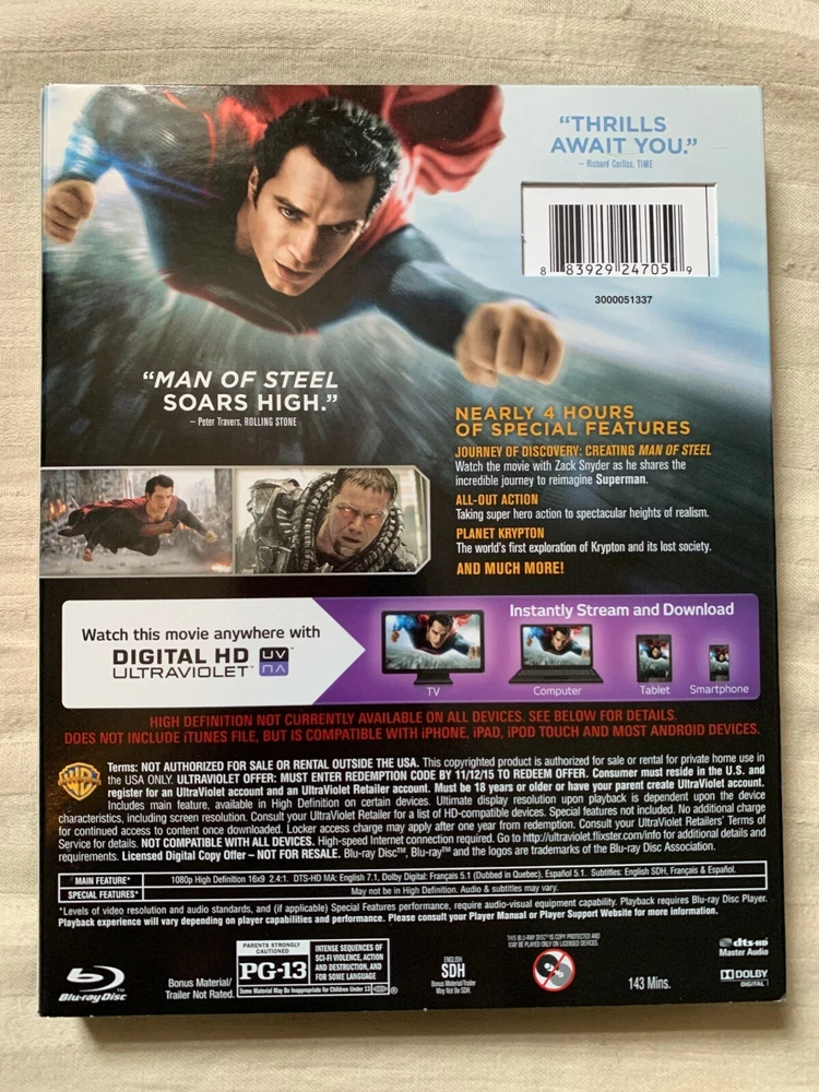 Sci-Fi Science Fiction Bluray Liquidation Sale! Tons of Blurays To Pick From! Science Fiction Bluray Liquidation Sale! Tons of Blu rays To Pick From! I am liquidating my movie collection and have tons of movies for sale. This specific listing is for Sci-Fi blurays. Each movie is $6.99. I do offer discounts when multiple movies are purchased (5% off 2 movies, 10% off 3 movies, 15% off 4 movies or more). All of the discs and cases are in like new condition unless otherwise noted on list. If you are looking for any specific titles, using ctrl+f will allow you search the page for the title. Shipping is $3.99 and for each additional bluray is $1.00. DOES NOT INCLUDE A DIGITAL COPY. Check out my other listing for different Blurays, DVDs, TV Shows and Boxset. Here are links to other genre listings: DVD: Action/Adventure , Comedy , Documentary , Drama , Family , Horror , Sci-Fi Bluray: Action/Adventure , Comedy , Drama , Family , Horror , Steelbooks Movies: Avengers (Bluray / DVD Combo) Avengers: Age of Ultron Batman Begins Blade II Case has crack on the spine (see photos) Captain America: Civil War Dark Shadows Deadpool (Bluray / DVD Combo) Dredd Dune Ex Machina Flash Gordon G.I. Joe: Retaliation (Bluray / DVD Combo) Godzilla (2014) (Bluray / DVD Combo) Gravity (Bluray / DVD Combo) Green Lantern: Emerald Knights Guardians of the Galaxy Vol. 2 (Bluray / DVD Combo) Hellboy II: The Golden Army Hulk (2003) I, Robot Inception Iron Man Iron Man 2 Iron Man 3 Jupiter Ascending (Bluray / DVD Combo) Jurassic Park (Bluray / DVD Combo) Jurassic Park III (Bluray / DVD Combo) Jurassic World (Bluray / DVD Combo) Justice League (Bluray / DVD Combo) Kick-Ass Lego DC Justice League: Attack of the Legion of Doom (Bluray / DVD Combo) Lost in Space Man of Steel (Bluray / DVD Combo) Next Avengers: Heroes of Tomorrow Pacific Rim (Bluray / DVD Combo) Predators Prometheus (Bluray / DVD Combo) Rise of the Planet of the Apes (Bluray / DVD Combo) RoboCop (1987) (Unrated Director's Cut) RoboCop (2014) (Bluray / DVD Combo) Rogue One: A Star Wars Story (Bluray / DVD Combo) Serenity Spider-Man Homecoming (Bluray / DVD Combo) Star Trek (2009) Star Trek Beyond (Bluray / DVD Combo) Star Trek Into Darkness (Bluray / DVD Combo) Superman the Movie The Amazing Spider-Man (Bluray / DVD Combo) The Amazing Spider-Man 2 (Bluray / DVD Combo) The Fifth Element The Hunger Games The Hunger Games: Catching Fire (Bluray / DVD Combo) The Hunger Games: Mockingjay Part 1 (Target Exclusive) The Hunger Games: Mockingjay Part 2 The Lost World: Jurassic Park (Bluray / DVD Combo) The Spirit Tomorrowland (Bluray / DVD Combo) Total Recall (2012) Transformers Transformers: Age of Extinction (Bluray / DVD Combo) Transformers: Dark of the Moon (Bluray / DVD Combo) Transformers: Revenge of the Fallen Wonder Woman Wonder Woman: Commemorative Edition X-Men X2: X-Men United The disc has some light scratches. X-Men 3: The Last Stand X-Men: Apocalypse (Bluray / DVD Combo) X-Men: First Class X-Men Origins: Wolverine Please feel free to message me through eBay with any questions you may have. Please note that all items are sold as pictured and described above. I have other blurays, DVDs, Boxset, CDs, Electronics, Books, Toys, Collectibles and many other items for sale. I are constantly adding new items. To see our items for sale, please click here . Shipping & Delivery Options: The item will be shipped via Economy Shipping. Additional Blurays are a $1.00 each. Payment Options: Payment must be made immediately after purchase. As soon as the item is paid for, it will either be shipped that day or the following business day.