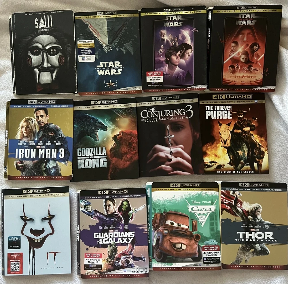 This is the Second listing for 4K UHD SLIPCOVERS- The other is linked here - in case your after any others- feel free to add to your CART from either- so that you can save on shipping costs. https://www.ebay.com/itm/234342026318?mkcid=16&mkevt=1&mkrid=711-127632-2357-0&ssspo=JqiTUpVxSWe&sssrc=2051273&ssuid=JqiTUpVxSWe&var=&widget_ver=artemis&media=COPY These are extremely well taken care of slipcovers- pleas ask any questions I have uploaded a pic of each- Please ask for more pics - this is a MULTI-LINE listing- yes it is marked LIKE NEW - but I cannot change it for every item- most are like NEW- but all are USED. Again you're buying just the slipcase- no movie included.