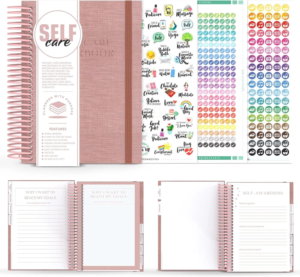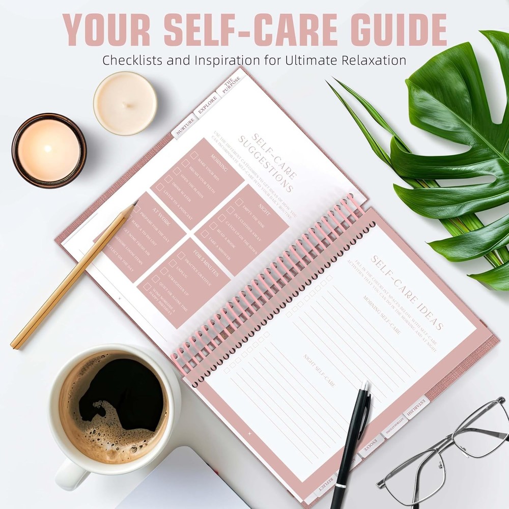 Free eBay listing template designed by dewiso.com Self Care Journal – Guided Daily Reflection Notebook to Support Mental & Physical Health Habits – Self Love Manifestation & Affirmations Planner - Personal Growth Goals Happiness FREE AND FAST SHIPPING! About this item MAKE SELF-CARE A PRIORITY WITH 3 MONTHS OF INTENTIONAL WELLNESS PLANNING: Our Self-Care Journal is 90 days of guided mental health workbook with techniques designed to help prioritize well-being and develop daily self-care habits. Track your mental and physical health habits with easy-to-follow daily prompts and wellness trackers. INSIGHTFUL PROMPTS & POSITIVE MINDSET: Filled with prompts, open-ended questions, wellness trackers, and tools to pinpoint positive changes for improved well-being. Mindfulness & Gratitude Sections help you reflect on your day and practice gratitude with dedicated spaces for self-love and manifestation. 90-DAY PERSONAL GROWTH JOURNEY: Develop sustainable habits with this 3-month wellness planner, designed to foster self-awareness and positivity. Form positive habits & build lasting routines focused on wellness, affirmations, gratitude, and self-reflection with easy-to-follow guided exercises. DAILY UPLIFTING JOURNALING WITH GUIDED DAILY REFLECTION: Encourage a happier, healthier mindset through consistent journaling and self-reflection. Promotes mindfulness and stress relief with daily prompts and intentional self-care practices that reduce anxiety and promote peace of mind. COMPACT, PORTABLE, & DESIGNED TO LAST: Our B5 size (7.5'' x 10'') self care workbook comes in a larger format so it’s easy to read the prompts and has spiral binding to make writing easier and pages turn smoother. Perfect for gifting: A beautifully designed self-care gift for women, men, or anyone on a personal growth journey. Great for holidays, birthdays, or a “thinking of you” gift. ENVIRONMENT-FRIENDLY MATERIALS: Eco-friendly vegan hardcover, thick 120 gsm paper, lay-flat binding, pen holder, ribbon bookmark, and front & back expandable pockets for loose papers or notes plus 3 sheets of beautifully designed wellness stickers to personalize and elevate your journaling experience! Travel-friendly design: Its lightweight, portable size makes it easy to use at home, work, or on the go. Product We offer a 30-Day Return Policy on items which you are not completely satisfied with. You have the option for a full-refund or an exchange of the item. No returns are available on items shipped outside of the US . Shipping We offer Free Shipping to the US and ship within 2 business days of payment, usually sooner. We use UPS express shipping. That's why your products are usually delivered within 3 days . Contact We try our very best to make sure every customer is completely satisfied. If there's a problem , message us! We're happy to help. 24/7 live chat available.