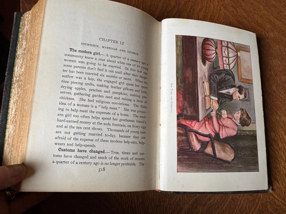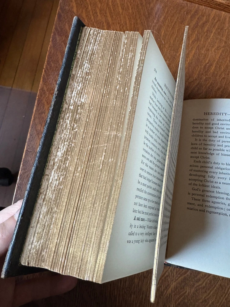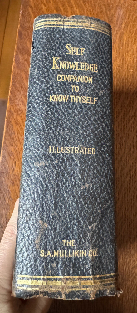 Self Knowledge Companion to Know Thyself and Guide to Sex Instruction: Vital Facts of Life for All Ages. Professor T.W. Shannon, member of the advisory board of the World's Purity Federation. 629 pages. 5.8x8x2.5. First Edition. 1913. Hardcover. Leather. Special chapters by Hon. Stanley Finch, special commissioner for the suppression of the white slave traffic, U.S. department of Justice; H.S. Steadwell, president of the World's Purity Federation; and Charles W. Eliot, former president of Harvard. Published exclusively by the S.A. Mullikin Company Marietta Ohio. A complete and comprehensive guide to parents for the proper instruction of their children concerning the delicate questions of life; timely help for the boy and girl at the ages of greatest danger with warnings of the pitfalls which lie hidden in their pathway AND vital information for the marriageable, safe, sane scientific counsel for the married of all ages, including knowledge vital to those in middle life and declining years with a word of warning against the prevailing ignorance of God's sacred laws of sex and heredity. Also includes black and white print (if you want it); doesn't look like this came from the book. Please see photos for condition: * Overall, VG+. * Wear on covers and spine. * The photos were taken with sunlight coming in on the left; book is a deeper color in artificial light. * Binding separated at front pasteboard as shown; back pasteboard binding is loose but not separated. Otherwise, binding is tight--the white paper showing in the 4th photo is the black & white photograph. * No missing, loose, or written on pages; interior pages are very clean. Thanks for looking and please email with questions.