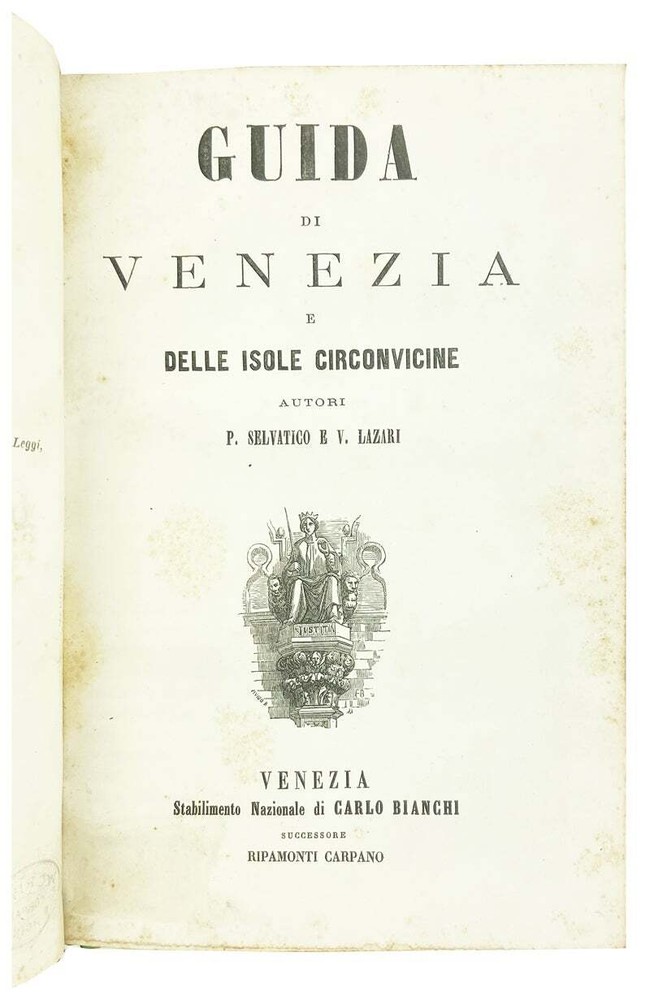 Guida di Venezia e delle Isole Circonvicine Author: P[ietro] Selvatico and V[incenzo] Lazari Title: Guida di Venezia e delle Isole Circonvicine Publication: Venezia: Stabilimento Nazionale di Carlo Bianchi, 1860 Description: Very Good. Venezia: Stabilimento Nazionale di Carlo Bianchi, n.d., ca. 1860s. Later Edition. Octavo (21cm.); contemporary green morocco over marbled boards, gilt-lettered spine in six compartments, marbled endpapers; viii,321pp.; illus. Leather a bit rubbed and dried along extremities, spine darkened, foxing to textblock, remnants of bookseller ticket to front free endpaper and faint late 19th-century ownership rubberstamp to two early leaves, else a Very Good, clean and sound copy. Useful and thoughtfully organized guide to Venice co-authored by one of the leading Italian historians of Gothic architecture Pietro Selvatico (1803-1880). Each landmark is divided into a table providing notable details and historical tidbits. Seller ID: 30600 Subject: 19th Century, Architecture, Art, Italian Language, Italy / Italian Writers, Travel / Exploration Capitol Hill Books is a used bookstore located on historic Capitol Hill in Washington DC, with three floors of quality used books, first editions, and rare books. [Note: Our online inventory is stored and managed at a separate location from at our brick and mortar shop. If you have a question about an item listed online, please send a direct message here rather than calling the store so that we can make sure someone familiar with the item in question can respond.] Terms Books described only as First Editions are First Printings unless otherwise specified. All items are guaranteed to be as described or they may be returned within 30 days of receipt for a full refund. All orders ship within two business days. Standard mail is USPS Media Mail. Expedited and international shipping are also available (please contact for estimates). We offer combined shipping on multiple orders. This listing was created by Bibliopolis.