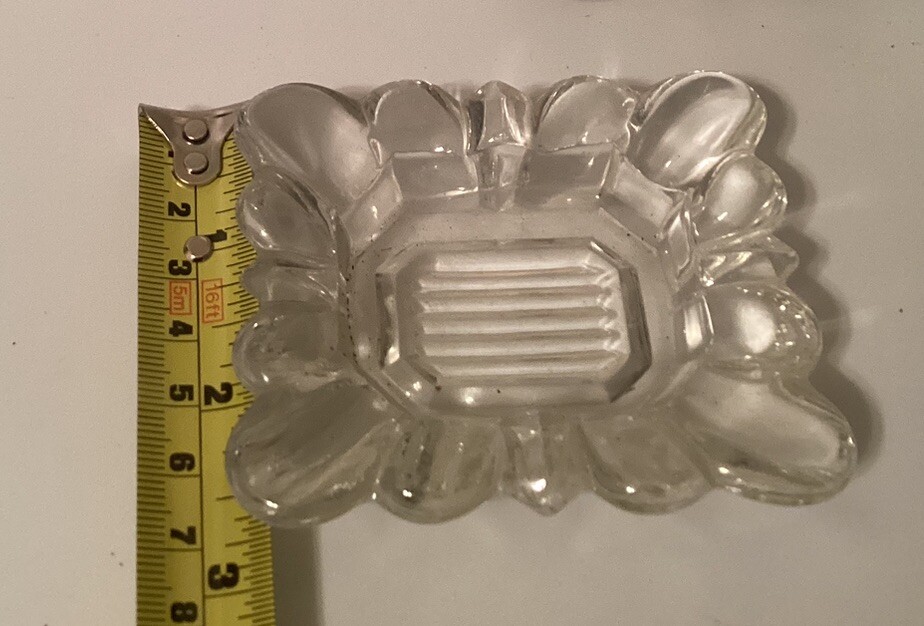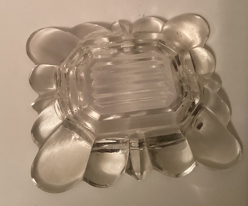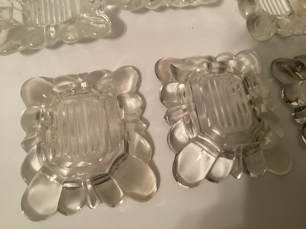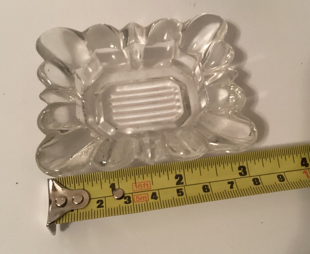 Enhance your collection with this set of 6 individual stacking rectangular ashtrays from Westmoreland. Made of clear depression glass, these antique originals were produced using a pressed glass technique in the United States during the 1940s. Each ashtray weighs 4oz and measures 3.25 inches in length, making them suitable for cigarettes and perfect for any art deco enthusiast. The glossy finish and rectangular shape of these ashtrays make them a unique addition to any decorative pottery and glassware collection. Whether you're a collector or simply looking for a vintage piece to add to your home, these Westmoreland ashtrays are a must-have.