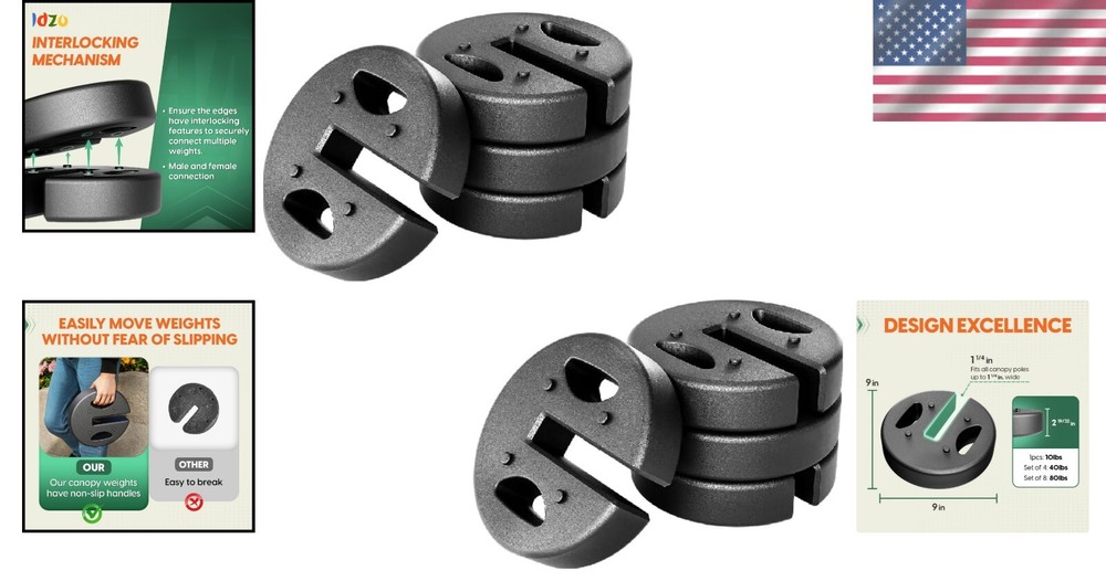 Set of 8 Outdoor Canopy Weights with No-Pinch Design - 80 lbs Total Stability ‹ › ‹ › ‹ › ‹ › ‹ › ‹ › ‹ › ‹ › ‹ › Set of 8 Outdoor Canopy Weights Total Stability with No-Pinch Design - 80 lbs Secure tents, canopies, and umbrellas with ease and confidence. Includes a carry strap for seamless transport to events, ensuring that you are always prepared. Each weight features four durable plastic shells, prefilling with concrete to ensure a robust total of 80 lbs per set. The innovative No-Pinch design allows for easy and secure installation, preventing pinched fingers during use. Compatible with 10x10 tents or canopies, this weight set provides stability and secure support for poles up to 1.25" in diameter. Constructed of high-quality plastic, these canopy weights are durable and practical, suitable for outdoor events of all kinds. Benefits: Achieve total stability in windy conditions, ensuring your events remain hassle-free. Portable and easy-to-transport, allowing for convenience in setup at various locations. Strong and durable construction provides peace of mind and reliable performance. User-friendly design makes installation straightforward, accommodating all outdoor enthusiasts. Why choose our Outdoor Canopy Weights? Ensure your outdoor events are a resounding success with our expert-engineered Set of 8 Outdoor Canopy Weights. Designed to deliver superior stability with a total of 80 lbs, these weights accommodate your tents and canopies effortlessly. The no-pinch design allows for a safe and simple setup, even for novice users. Whether you're hosting a wedding reception, a backyard barbecue, or a market stall, these weights are the perfect addition to your outdoor gear. Experience unparalleled security and peace of mind on windy days - elevate your outdoor gatherings by securing them with our canopy weights. Invest in the best quality - order your Set of 8 Outdoor Canopy Weights today! Shipping Free & Fast Shipping - We offer free shipping to most of the USA with a normal delivery time of 3-7 days. However, due to the current situation, additional delivery time (up to 3 weeks) may be required for some items. Alternative Carriers - We may use alternative carriers (e.g. USPS, FedEx, UPS, etc.) to ensure your package arrives safely and on time. Due to the use of multiple carriers, we are unable to provide a tracking number automatically. Handling Time - Orders are processed and shipped within 1-2 business days of receiving cleared payment. Shipping Restrictions - Shipping to Alaska, Hawaii, Puerto Rico, Guam, and other US territories may incur shipping charges or delivery restrictions. Please contact us before ordering, or your order can be refunded/cancelled. State Restrictions - There may be restrictions based on your state of purchase. For example, certain items may not be shipped to California due to state regulations. Contact for Tracking Updates - If you require tracking updates or have any concerns about the delivery of your order, please feel free to contact us, and we will be happy to assist you. Return 30-Day Hassle-Free Returns - We want you to be completely satisfied with your purchase. If you are not, you can return the item within 30 days of receiving it for a full refund or exchange. Easy Return Process - To start a return, simply contact us and we will provide you with a prepaid return shipping label and detailed instructions. Restocking Fee - There are no restocking fees for returns. However, the buyer is responsible for return shipping costs if the return is not due to a seller's error. Refund Processing Time - Refunds will be processed within 5 business days of receiving the returned item in its original condition. Payment We accept all major credit cards, PayPal, and Apple Pay for your convenience. Your payment information is secure and encrypted to ensure a safe and seamless transaction. Please complete your payment within 3 days of purchase to avoid any delays in shipping. Feedback Your feedback is extremely important to us. We strive to provide the best products and customer service possible. If you are satisfied with your purchase, please take a moment to leave us a positive review. If you have any concerns or issues with your order, please contact us before leaving negative feedback. We are committed to resolving any problems and ensuring your satisfaction. Contact Us If you have any questions or concerns, please feel free to reach out to our customer support team. You can contact us through the eBay messaging system. We are available Monday to Friday, 9:00 am to 5:00 pm EST, and we will do our best to respond to your inquiry within 24 hours. Buy it now and enjoy a pleasant shopping experience! UPC: Not Set Unit Quantity: 80 lbs Features: Durable,No-Pinch design,Easy Setup,Easy Removal,Secure installation,Pre-filled with concrete,Carrying strap,Fits 10x10 tents,Practical for outdoor events,Durable plastic shells Type: Canopy Brand: Unbranded Color: Dark Grey Frame Material: Plastic Item Width: Not Set Finish: Not Set Item Depth: 11.42 in Item Height: Not Set MPN: Not Set Number of Pieces: 8 Installation: Portable Roof Material: Not Set Shape: Not Set Country/Region of Manufacture: Not Set Style: Not Set Item Weight: 10 lb Manufacturer Warranty: Not Set Unit Type: lb Fixings Supplied: Not Set Assembly Required: Not Set