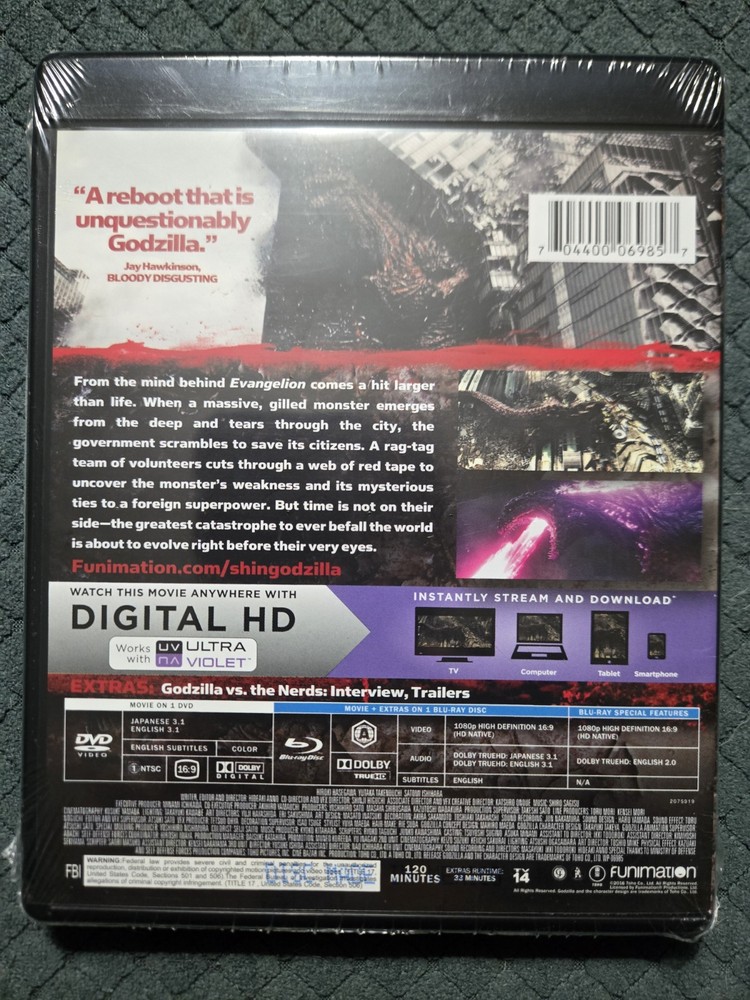 Absolutely thrilled with this purchase! The picture quality is stunning and the slipcover is pristine. Love having both Blu-ray and DVD options plus the digital code. A must-have for any Godzilla fan!
