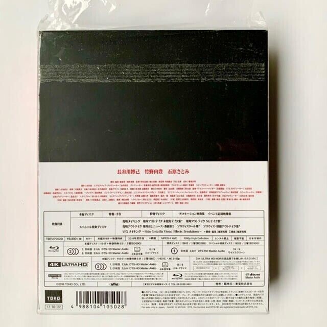 Item Title Description About This Items Shin Godzilla Resurgence Special Edition 4K Ultra HD Blu-ray w/ 3Blu-ray Movie Appearance 3Blu-ray Disc Video + 1Ultra HD Blu-ray Condition New Included Items 3Blu-ray Disc Video + 1Ultra HD Blu-ray only Shipping SpeedPAK Economy We always send the item with a tracking number. So please place an order without any concern on delivery. You can always track the delivery status. Shipping is only available to the address registered in eBay. If you want us to send another address, please change your address on eBay and then place an order. Shipping is available from Monday to Friday. Weekends are not available because freight (shipping) companies are closed. We do not mark merchandise values below value or mark items as “gifts” – Japan, US and International government regulations prohibit such behavior. If your address is in the remote areas defined by the freight (shipping) company, please pay the additional shipping fees with PayPal. About Importer's Obligation Import duties, taxes, and charges are not included in the item price or shipping cost. These charges are the buyer's responsibility. Please check with your country's customs office to determine what these additional costs will be prior to bidding or buying. Thank you for your understanding.