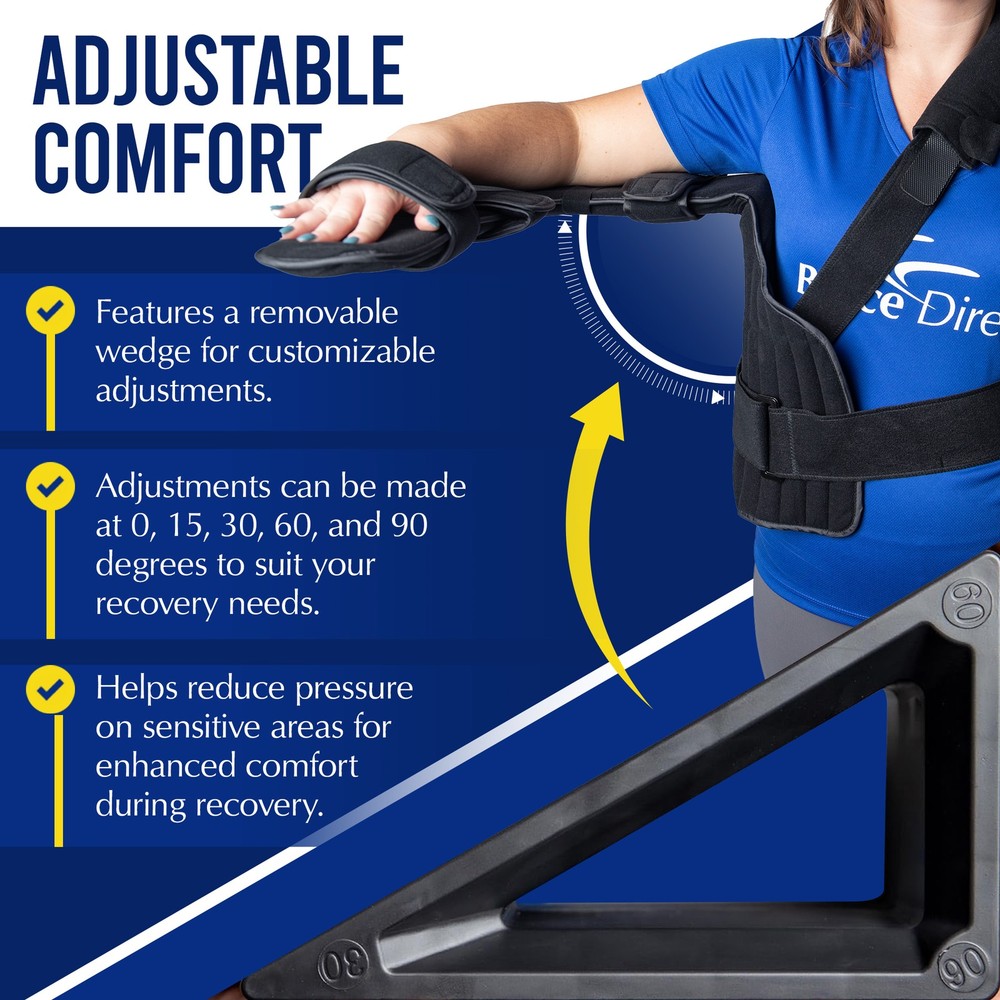 Embrace recovery with the Brace Align Deluxe Shoulder Support Brace PDAC L3960. Featuring a removable wedge for adjustable shoulder positioning and soft padded straps for day-long comfort. Ideal for a wide range of shoulder conditions. Brace Align Deluxe Shoulder Brace - Professional Rotator Cuff Support & Recovery Brace PDAC L3960 Premium Shoulder Support Brace for Rotator Cuff Recovery Experience the pinnacle of shoulder recovery support with the Brace Align Deluxe Shoulder Support Brace PDAC L3960. Tailored to fit both your left and right arm, this brace offers adjustable comfort with a removable wedge for shoulder positioning at various angles. The soft padded straps ensure your comfort throughout the day, distributing weight evenly to reduce neck pressure and prevent skin irritation. Whether you're recovering from rotator cuff repair, shoulder injuries, or tendonitis, this brace is designed to stabilize and support, accelerating your journey to recovery. KEY FEATURES: ADJUSTABLE ABDUCTION WEDGE: Set 0°, 15°, 30°, 60°, or 90° as directed for protected positioning PRESSURE-RELIEVING STRAPS: Wide padded straps spread weight to ease neck and shoulder stress STABLE IMMOBILIZATION: Sling and waist belt work together to control motion and promote healing UNIVERSAL APPLICATION: Wear on left or right with a customizable fit for most adults EASY DAY-LONG WEAR: Soft materials help prevent hot spots and skin irritation FSA HSA ELIGIBLE: Use your Flexible Spending or Health Savings Account for this purchase PDAC APPROVED L3960: Eligible for insurance reimbursement (check with your provider) INDICATIONS: Rotator Cuff Repair Rotator Cuff Injury Shoulder Injuries Frozen Shoulder Elbow Injuries Elbow Fractures Post-Surgical Recovery Rehabilitation Support Features: ❗ UNIVERSAL SHOULDER BRACE SIZING: One size fits most with adjustable straps and a removable wedge system for positioning at 0, 15, 30, 60, or 90 degrees. Fits either the left or right arm. ✅ ROTATOR CUFF & SHOULDER RECOVERY: Provides stabilization and support for rotator cuff repair, frozen shoulder, tendonitis, and post-surgical recovery. ✅ ADJUSTABLE WEDGE SYSTEM: Removable wedge allows positioning at multiple angles from 0–90 degrees for customized shoulder and arm support. ✅ UNIVERSAL LEFT OR RIGHT FIT: Designed for both Men and Women, this abduction immobilizer can be worn on either arm with adjustable straps for comfort. ✅ PERSONALIZED SUPPORT: Reach out to Brace Direct (an American Owned Company) to schedule an appointment with a fitting professional for a free video fitting and adjustment session to achieve the perfect fit. Shipping Shipping Continental US Street and PO box: 3-6 business days** Alaska and Hawaii Street and PO box: 6-10 business days** US Protectorates and Canada Street and PO box: 6-10 business days** APO/FPO Street and PO box: 15-30 business days International outside US: 10-25 business days * Our business days are Monday-Friday 9:30 am - 5:00 pm EST. We are closed during most federal holidays within the United States. Orders placed on weekends and after 2:00 pm EST on weekdays may not be processed until the next available business day. Returns Returns And Exchanges Returns and exchanges will be accepted within 30 days of purchase. Customers must contact us via eBay messages to obtain a prior authorization code before shipping a return or exchange. Once authorized the customer will be sent a prepaid return label. The return shipping cost for international orders is the responsibility of the customer. If the item returned is worn, damaged, or not in its new/original packaging, it is subject to restocking fees and an exchange will not be granted. If you are exchanging please email us with the product or size you would like along with a contact telephone number. Once your return is received and inspected, your return/exchange will promptly be processed. Shipping costs may not be refunded unless an incorrect or defective item was sent. * Please note that we cannot guarantee your return or exchange without the addition of a package tracking service. Please keep that information for your records. About Us Brace Direct believes that all patients should have access to high quality medical braces to help them get out of pain. With the ever-increasing cost in insurance premiums, co-pays, and deductibles, we believe it is important to offer a direct way to get the braces you need. Removing the need of having to go through insurance companies greatly reduces the cost to you. We strive on bringing you the highest quality medical braces at direct pricing. Thank you for trusting Brace Direct with helping you get out of pain.