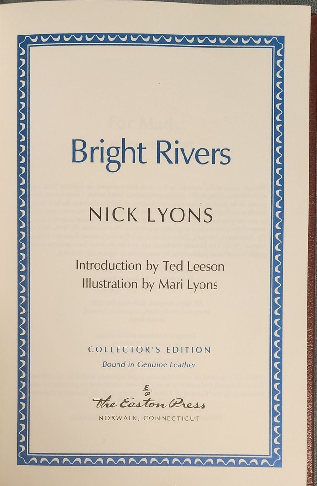 Signed Bright Rivers Nick Lyons Easton Press Vtg Leather Bound Fishing Book 1995. Shipped with USPS Media Mail.