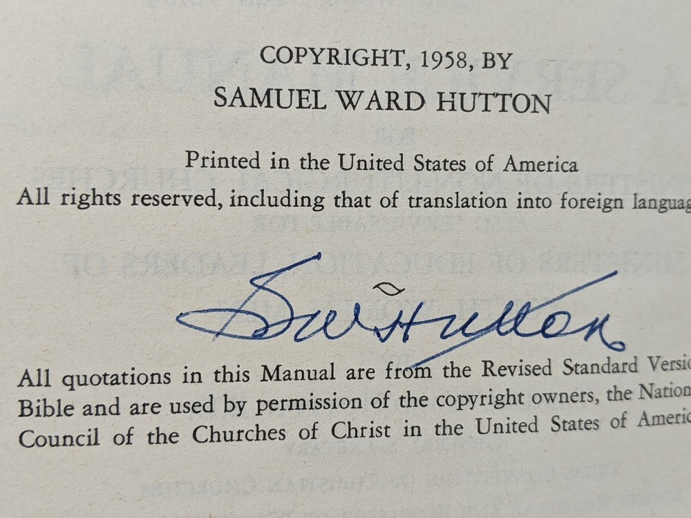 Signed First Edition, A Service Manual: by Samuel Ward Hutton, 1958. Condition is Very Good. Shipped with USPS Media Mail.